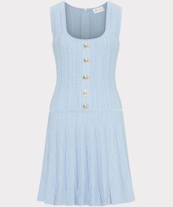 MILLY Women’s Wave Godet Flare Knit Mini Dress | Light Blue
