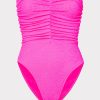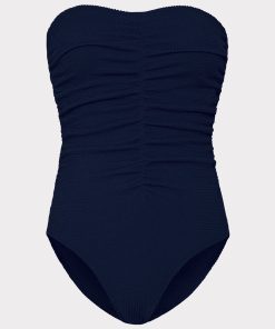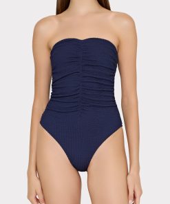 MILLY Women’s Swim Textured Ruched One Piece | Navy