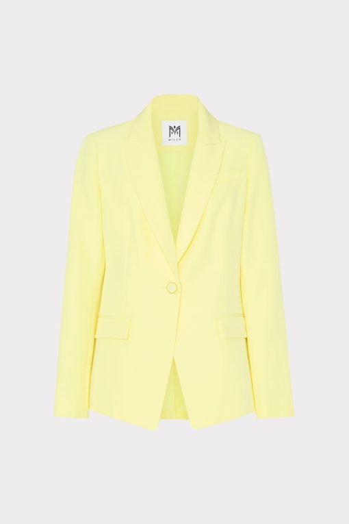 Our classic blazer is back for Spring in new pastel hues. It’s cut from our easy Cady fabric, has a bit of stretch for comfort, is darted for shape, and has a single button that draws in the waist. Wear it with absolutely everything.