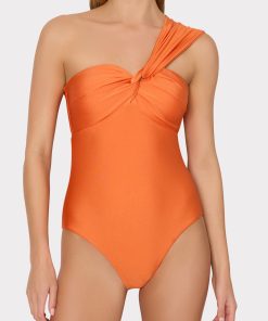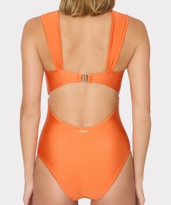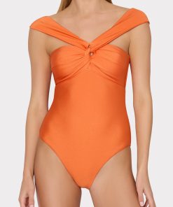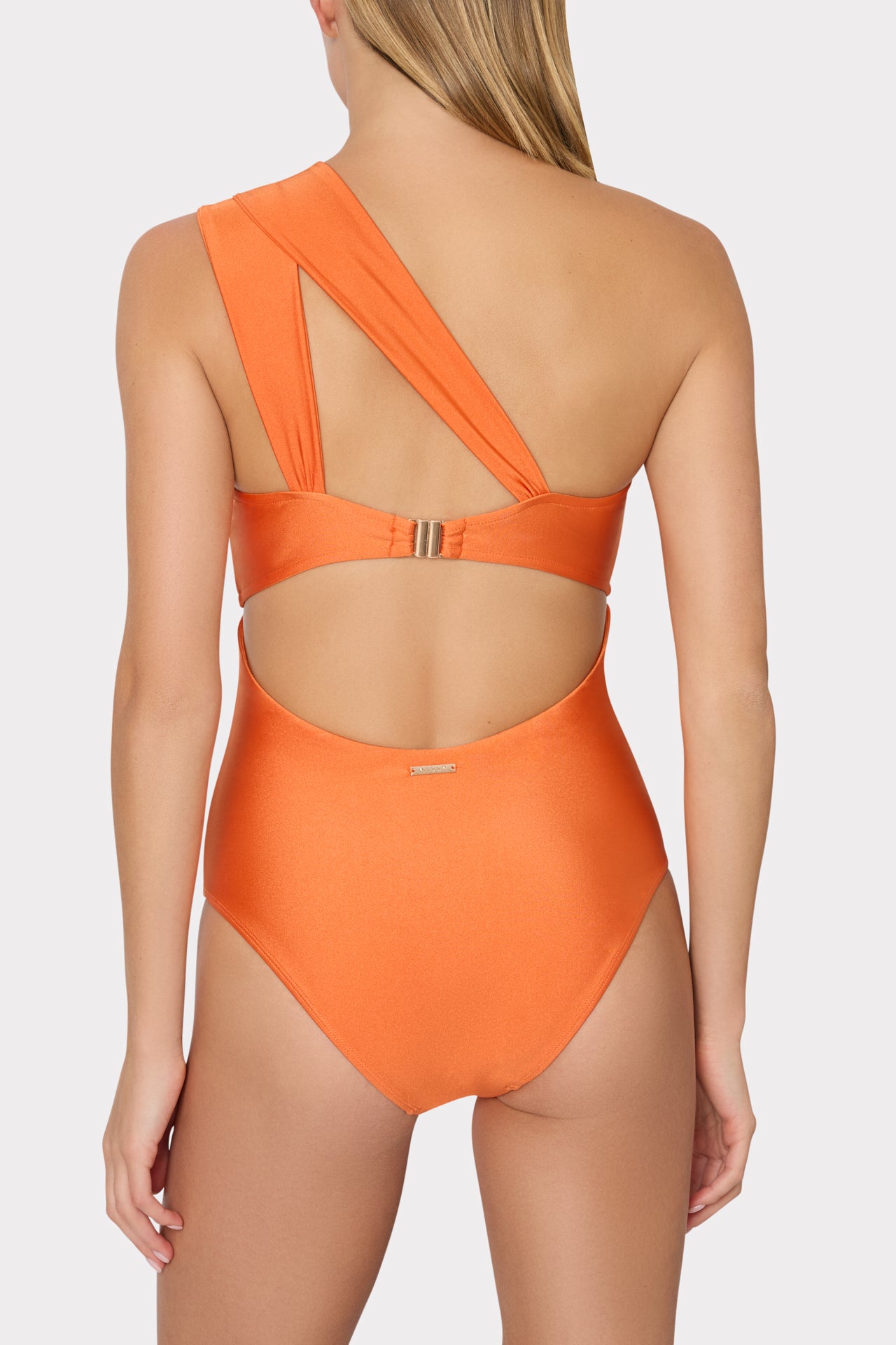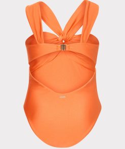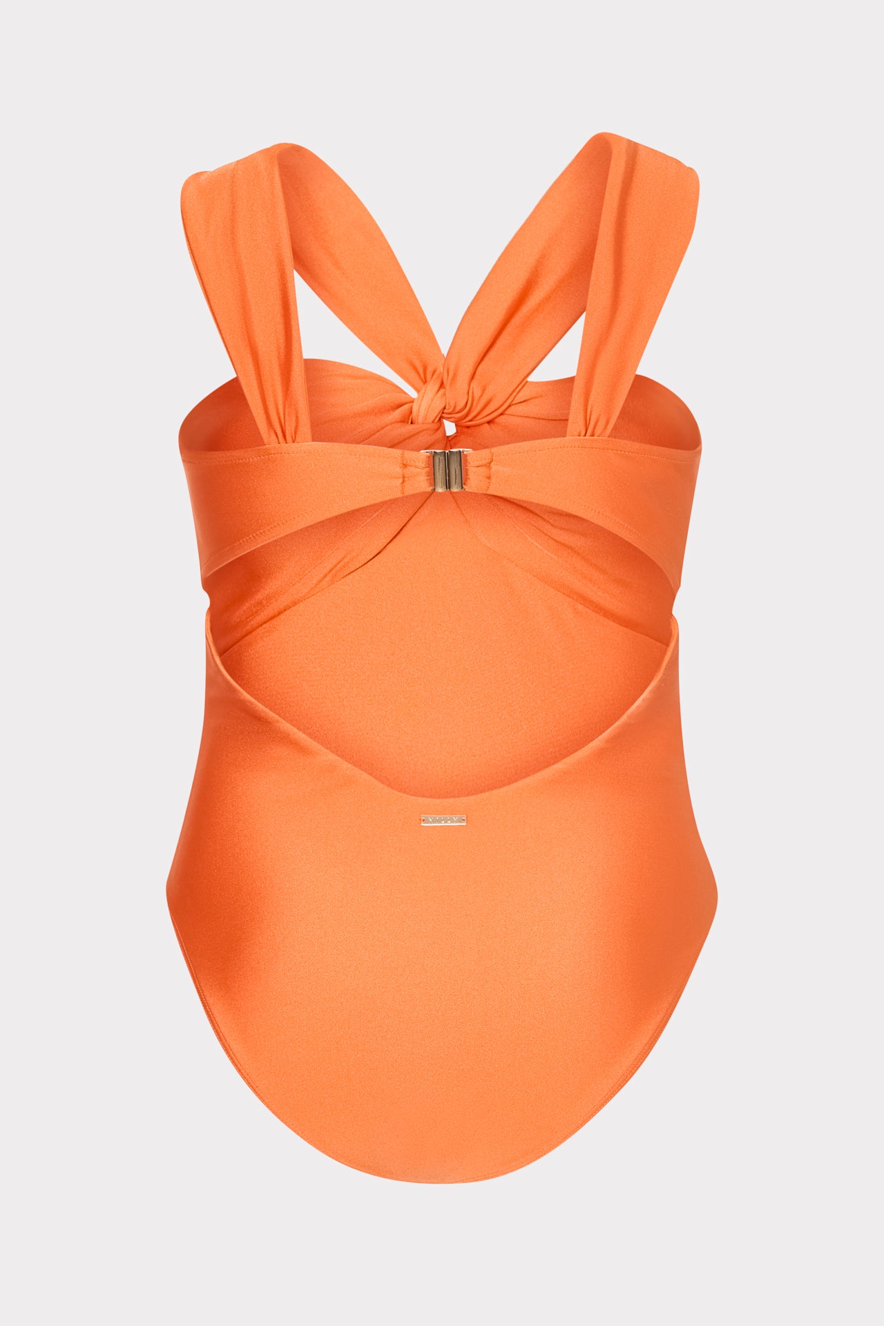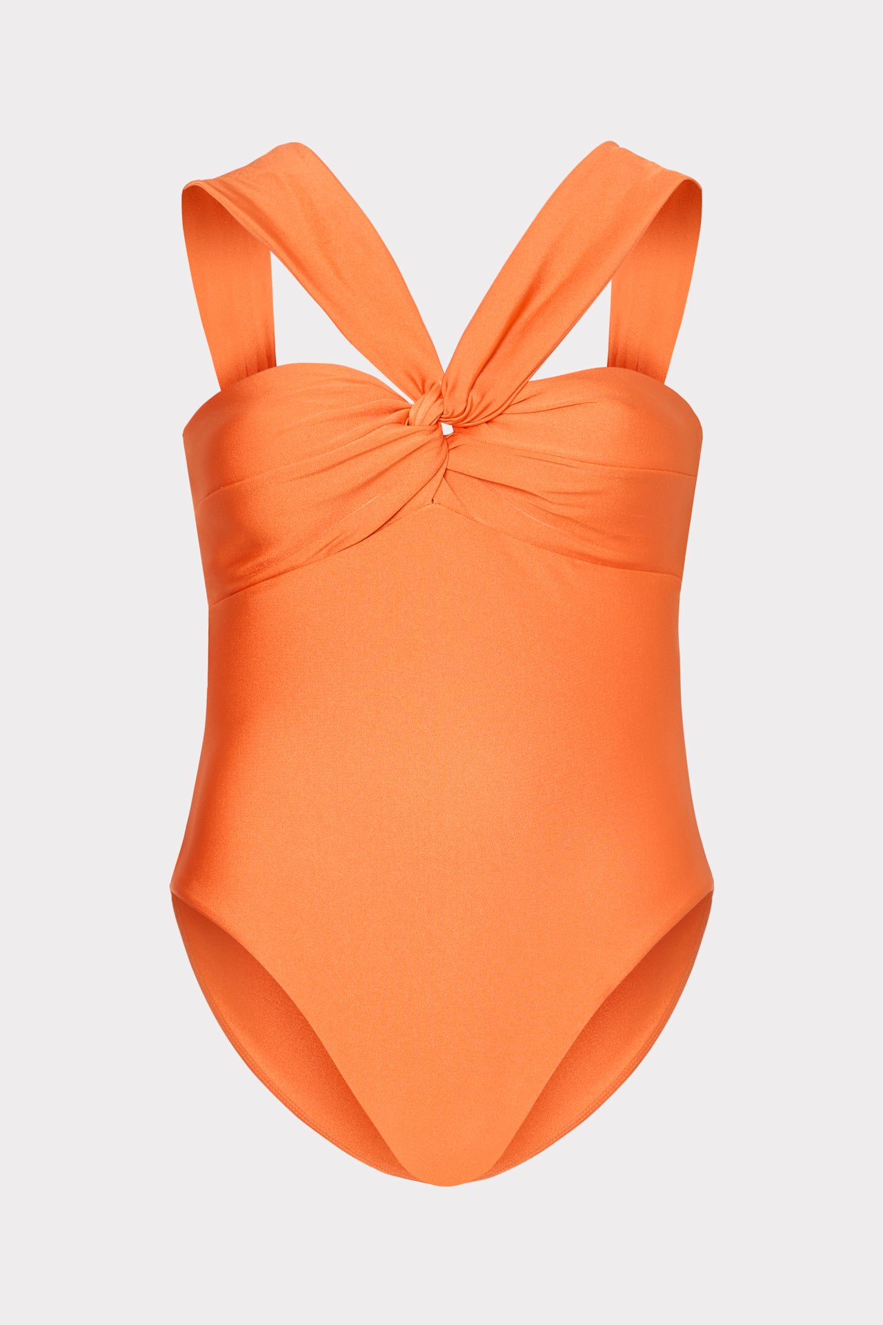 Made from our smoothing stretch swim fabric, this elegant bandeau-style has moveable straps that can be worn off-the-shoulder or twisted across the chest. It has removable cups, provides medium coverage on the bottom, and clasps in the back to close. This season, it’s offered in high shine, glossy fabric that will give your poolside look a special gleam. Wear yours with any of our coordinating chiffon sarongs and cover-ups.