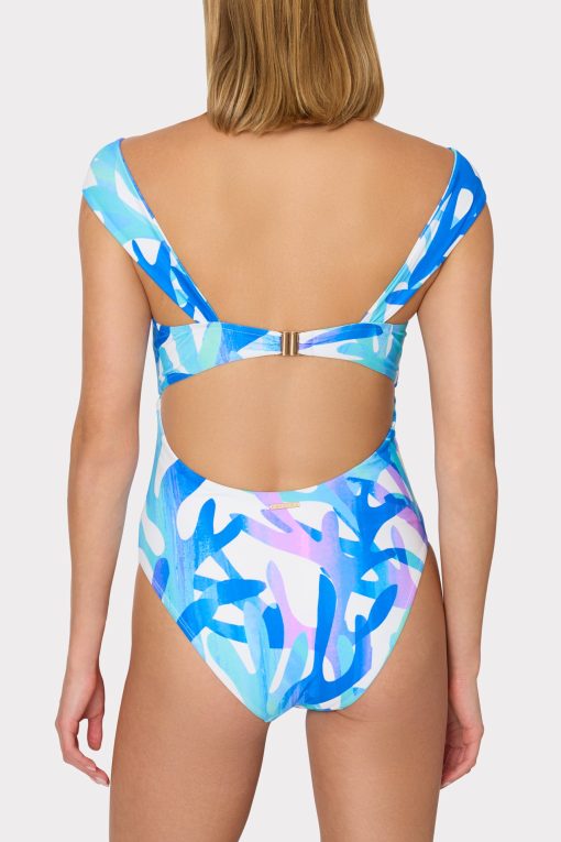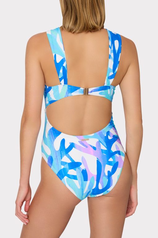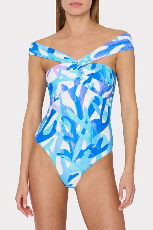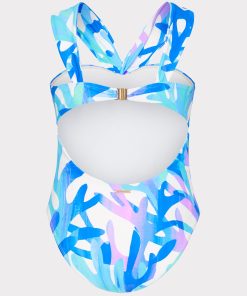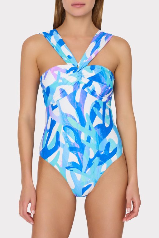Made from our smoothing stretch swim fabric, this elegant bandeau-style has moveable straps that can be worn off-the-shoulder or twisted across the chest. It has removable cups, provides medium coverage on the bottom, and clasps in the back to close. This season, it’s offered in our new coral reef-inspired Italian Under the Sea Print. Wear yours with any of our coordinating chiffon sarongs and cover-ups.