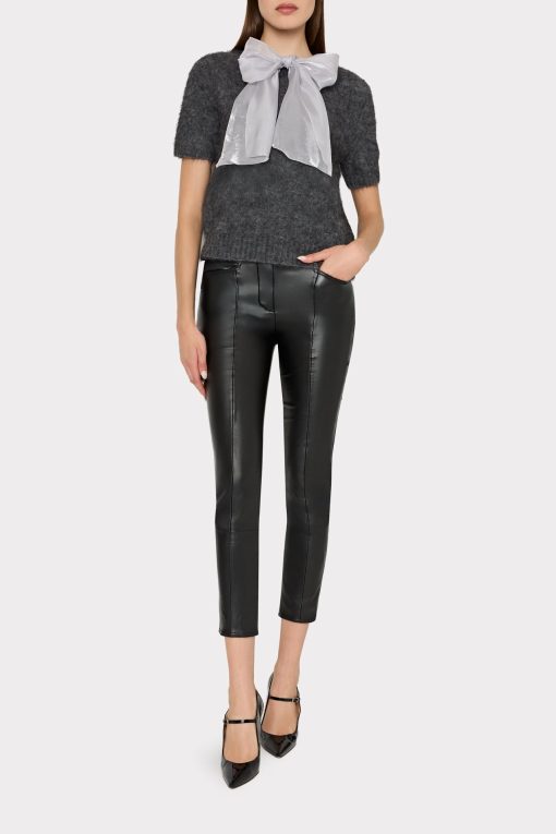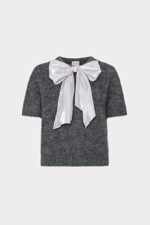MILLY Women’s Bow Short Sleeve Sweater | Smoke