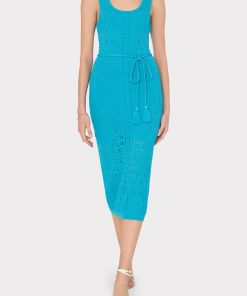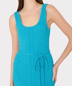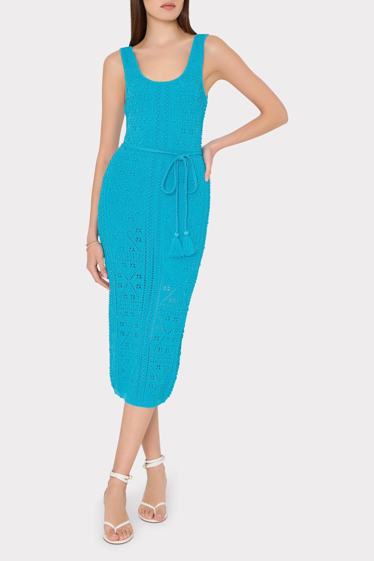 Made using our semi sheer, super stretchy textured ‘Bubble Print’ pointelle fabrication, this midi dress is lined to the mid thigh. It’s finished with a removable braided tie at the waist. Elevate your beach party look, bring it on vacay, and sip lots of sunset cocktails in the most comfy and chic piece in our summer collection.