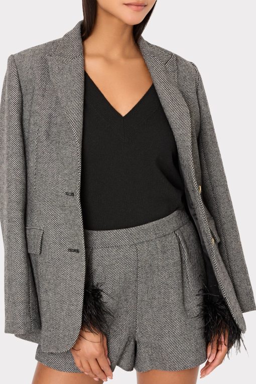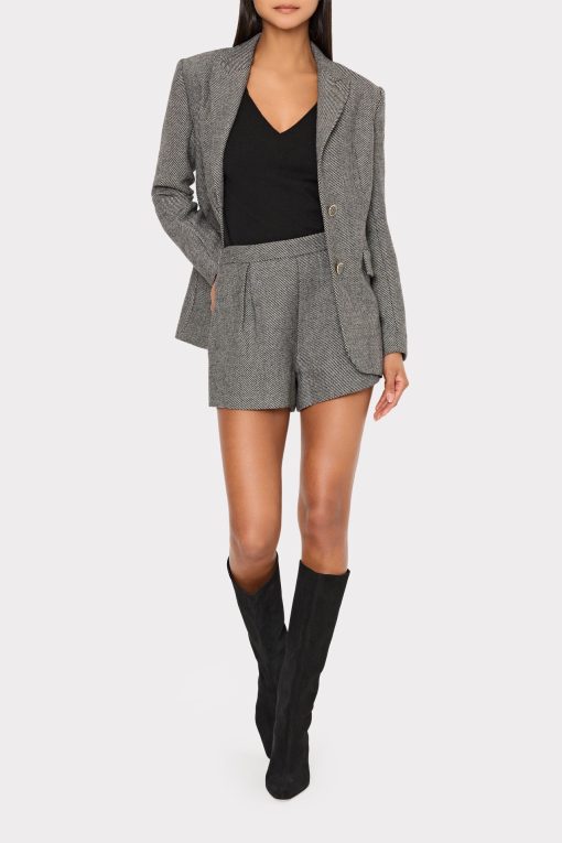 Cut from classic wool tweed, this pleated short style is meant to be worn with our coordinating Palmer blazer. Or wear it on its own with our tie neck blouse for Fall. We’re all about incorporating this traditional fabric into Fall looks.