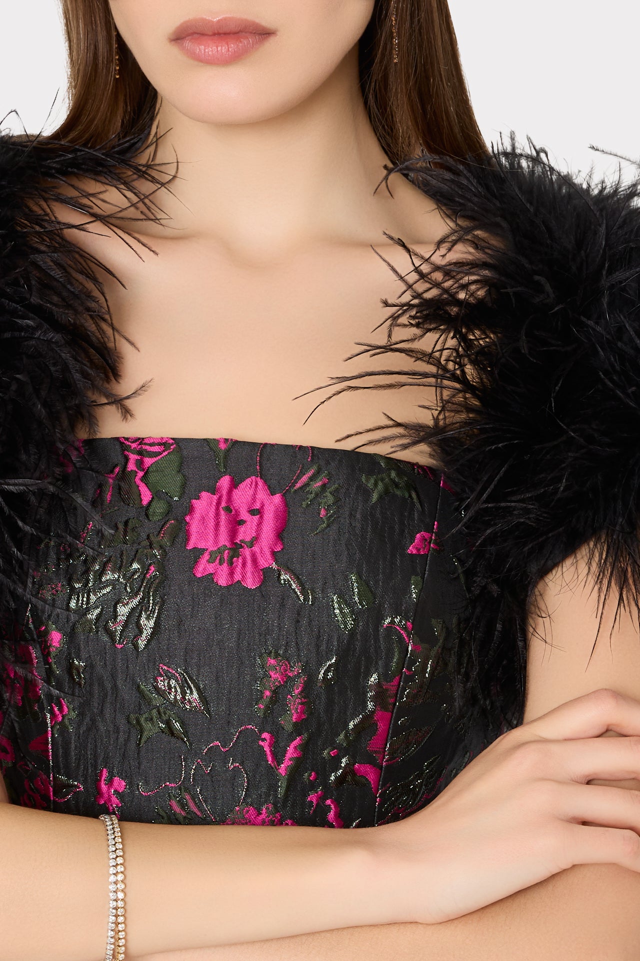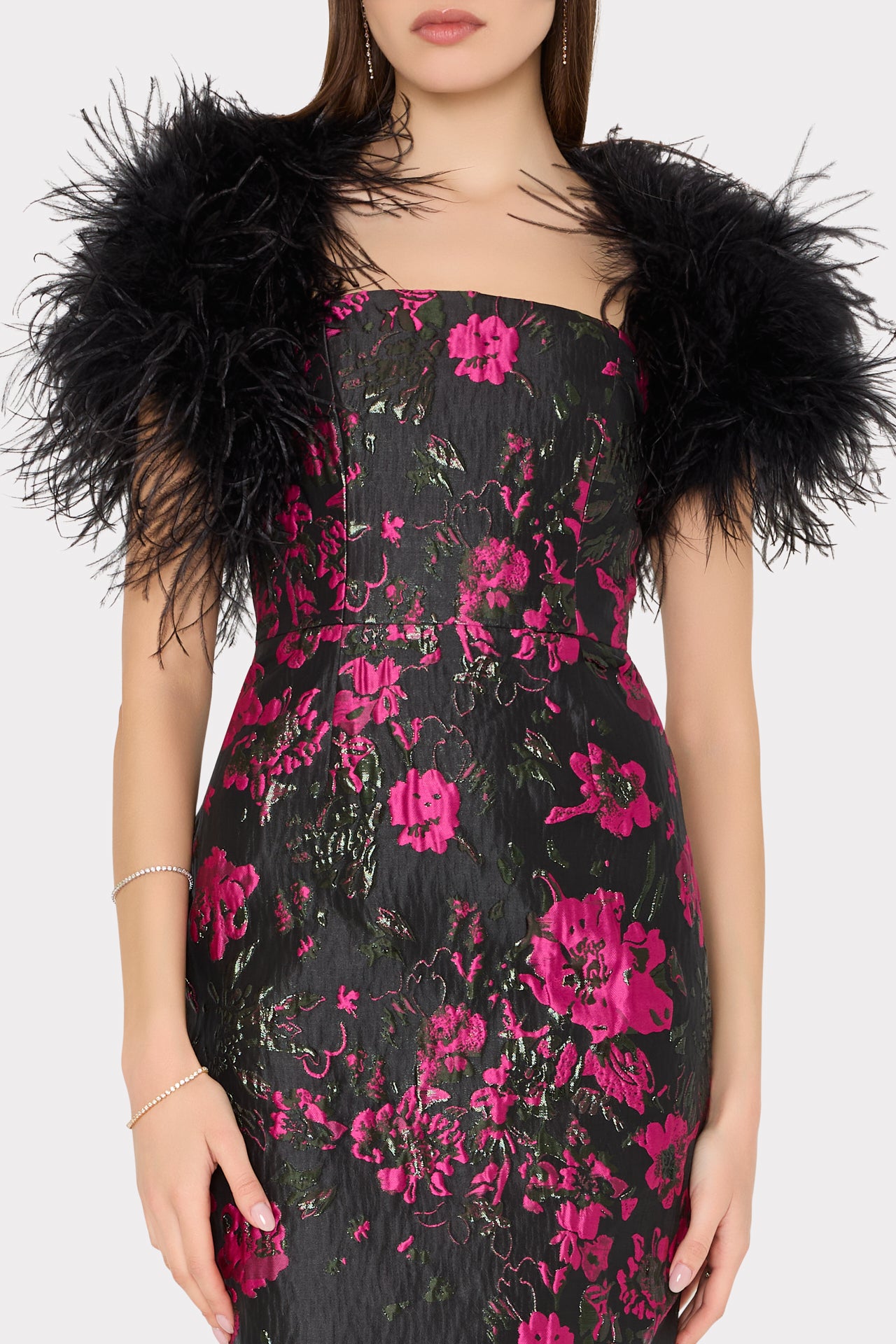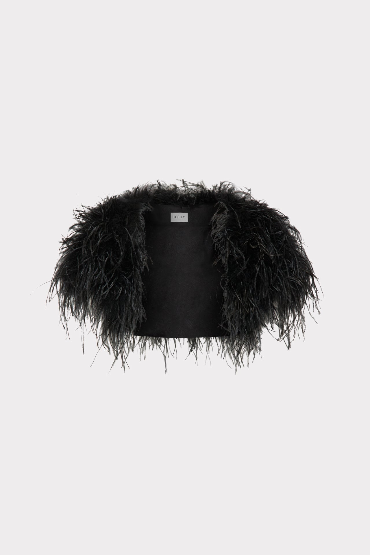 The perfect accent for any party look, our feather bolero is bursting with single strands of feathers that create cap sleeves. It has an open front to showcase whichever top or dress you decide to pair it with.