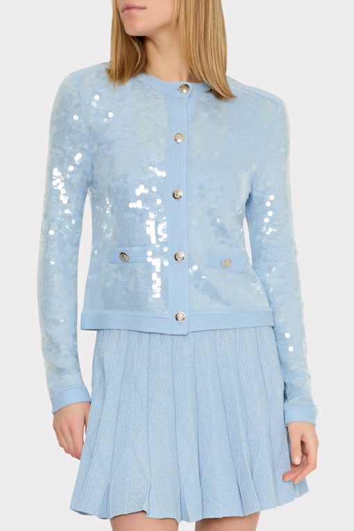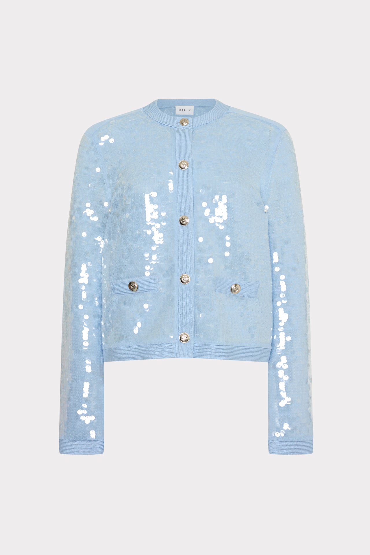 Introducing the Iman Sequin Knit Cardigan, a glamorous wardrobe addition perfect for any dressy occasion. This cardigan features eye-catching paillettes throughout and a chic front button closure, making it a versatile piece for a night out, date night, or even a special party. Elevate your style effortlessly with this stunning cardigan that adds a touch of sparkle to your look, ensuring you shine wherever you go.