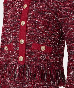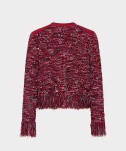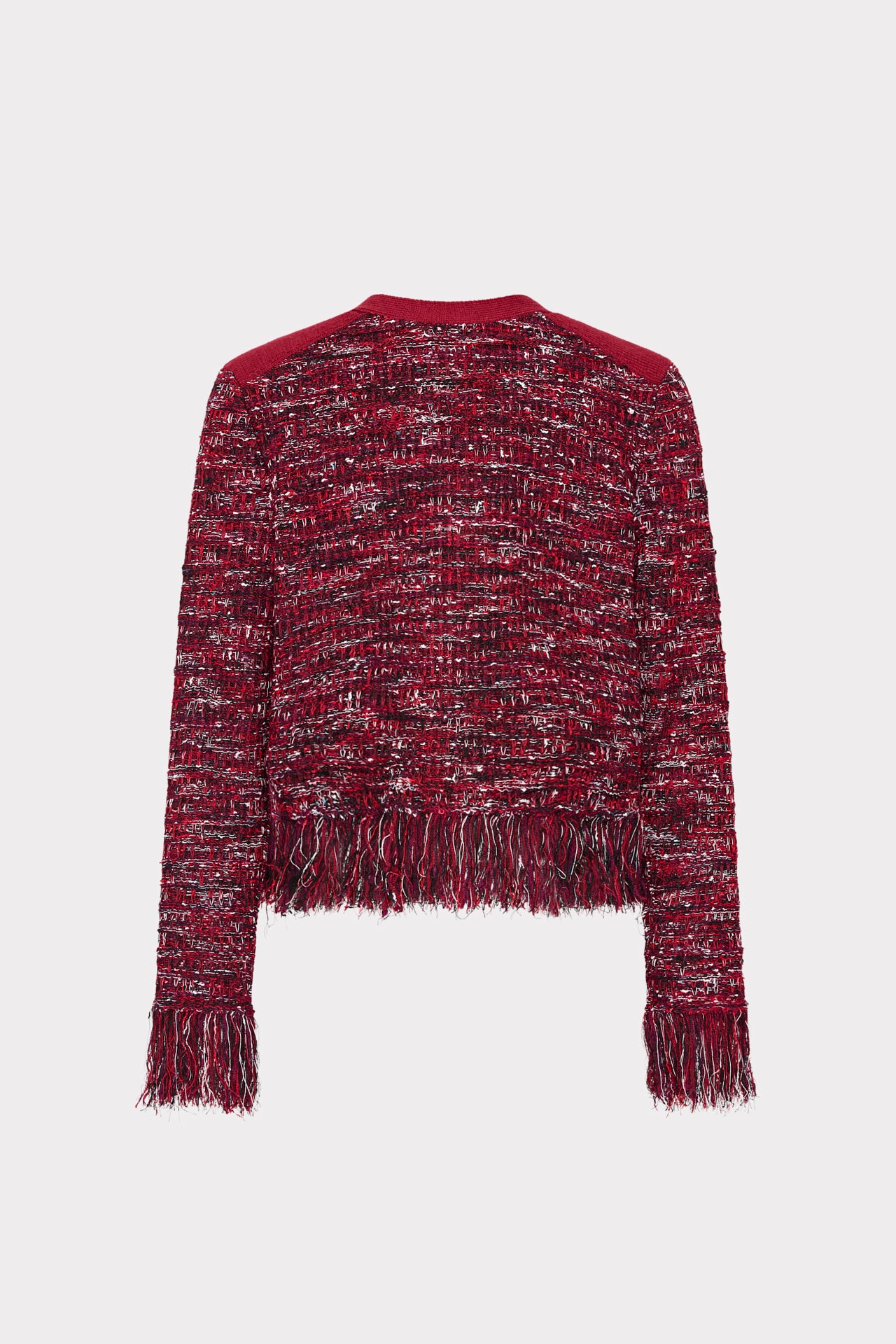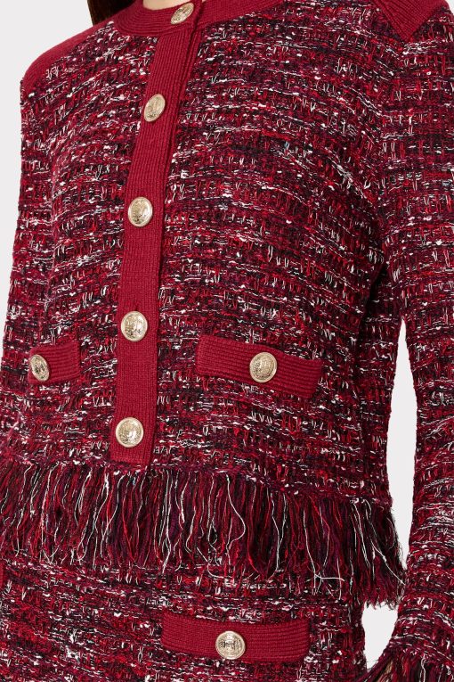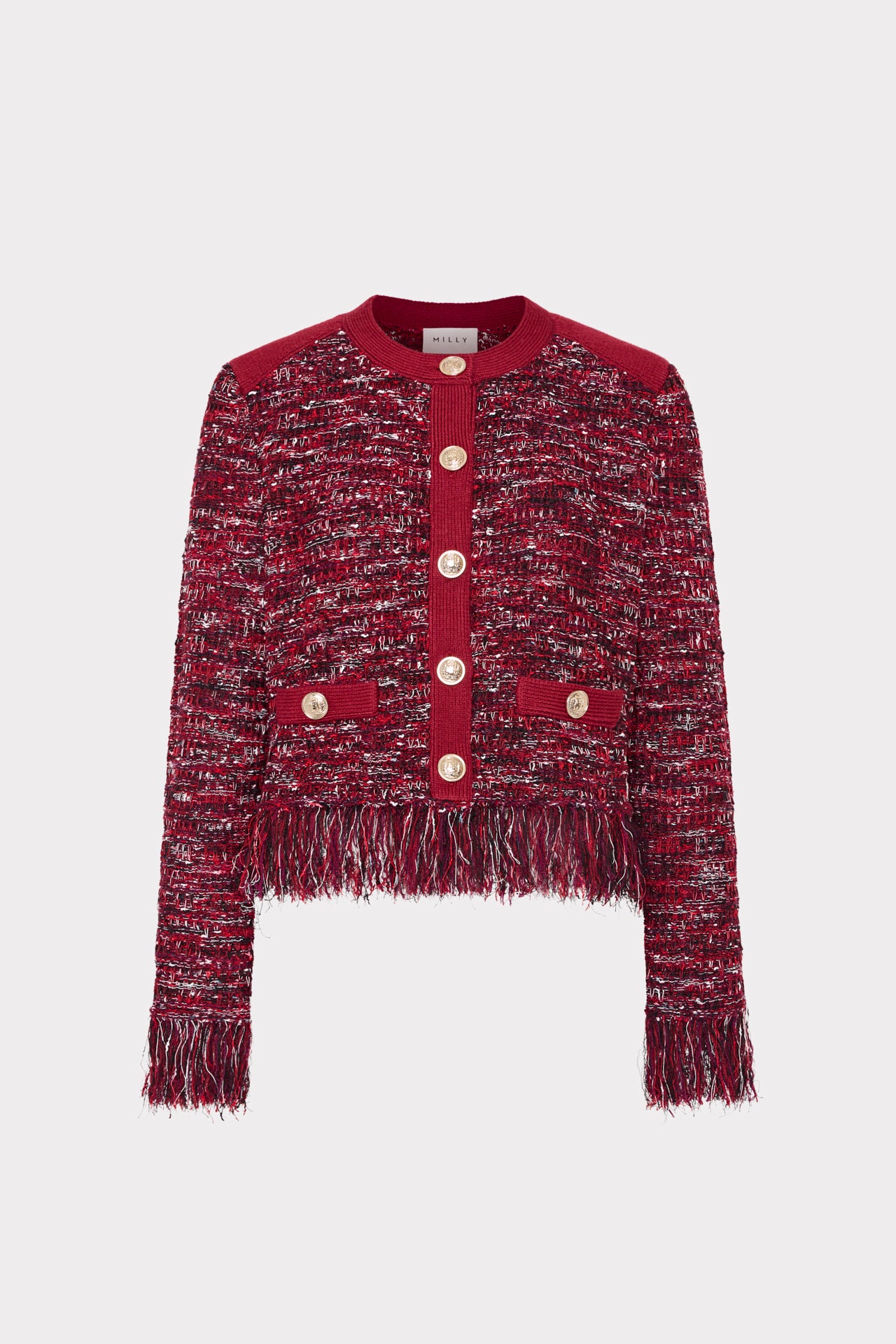 Our iconic cardigan jacket gets a new twist this season with fun, fringe detailing at the hemline. The intricate gold buttons can be fastened or worn undone. Wear it with its coordinating Kali Knit Mini Skirt or pair it with your favorite tailored trousers.