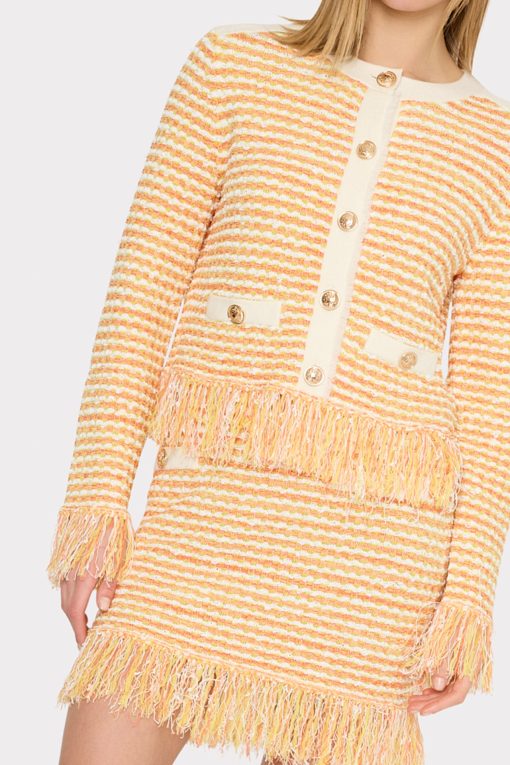 Introducing the Kali Textured Fringe Knit Mini Skirt! This playful mini skirt boasts a multi-color yarn design with a flirty fringe hem, perfect for a night out with friends or a casual date night. Featuring a convenient pocket detail with a chic gold button at the hip, this skirt is crafted from heavy knit material for a comfortable yet stylish look. Pull on and go with the elastic waistband, making it an easy choice for any occasion that calls for a touch of fun and flair.