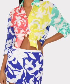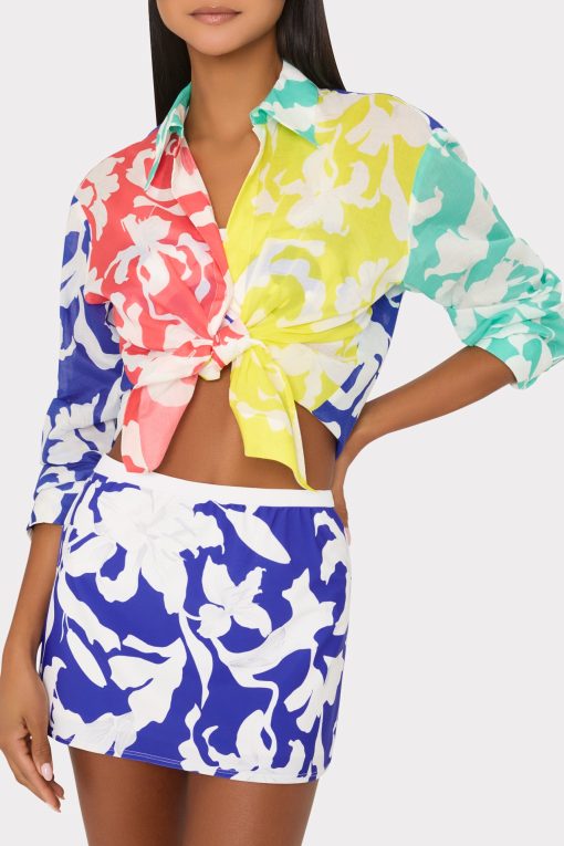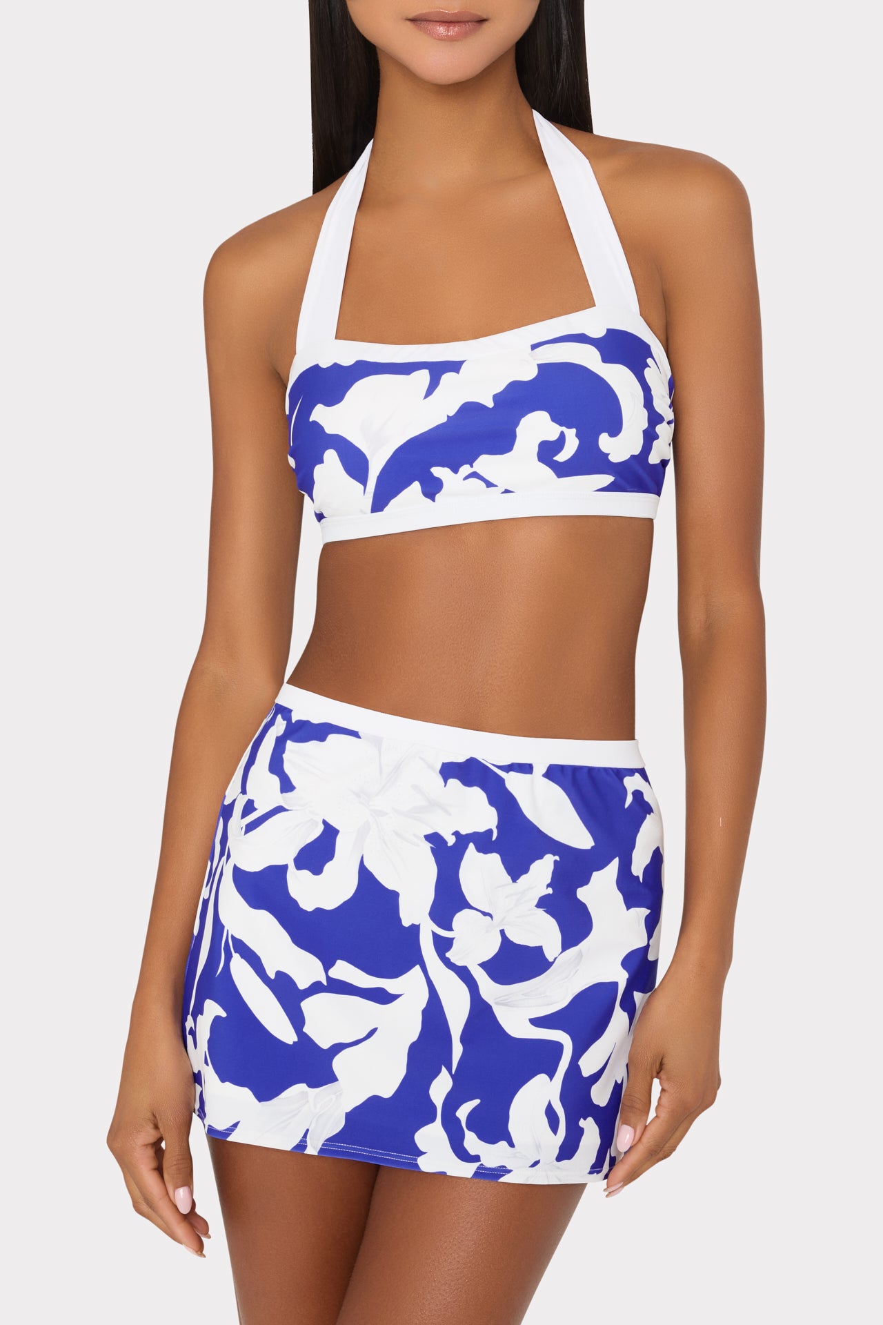 On this new sporty swim skirt style, our Lily Silhouette print is shown with a white border around the waist. For the full look, wear it with our Lily Silhouette Bikini Top and Bottom, and our Lily Silhouette Cotton Voile Button Down.