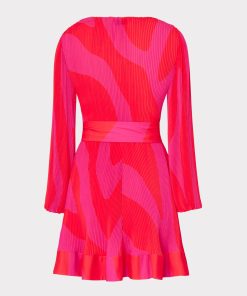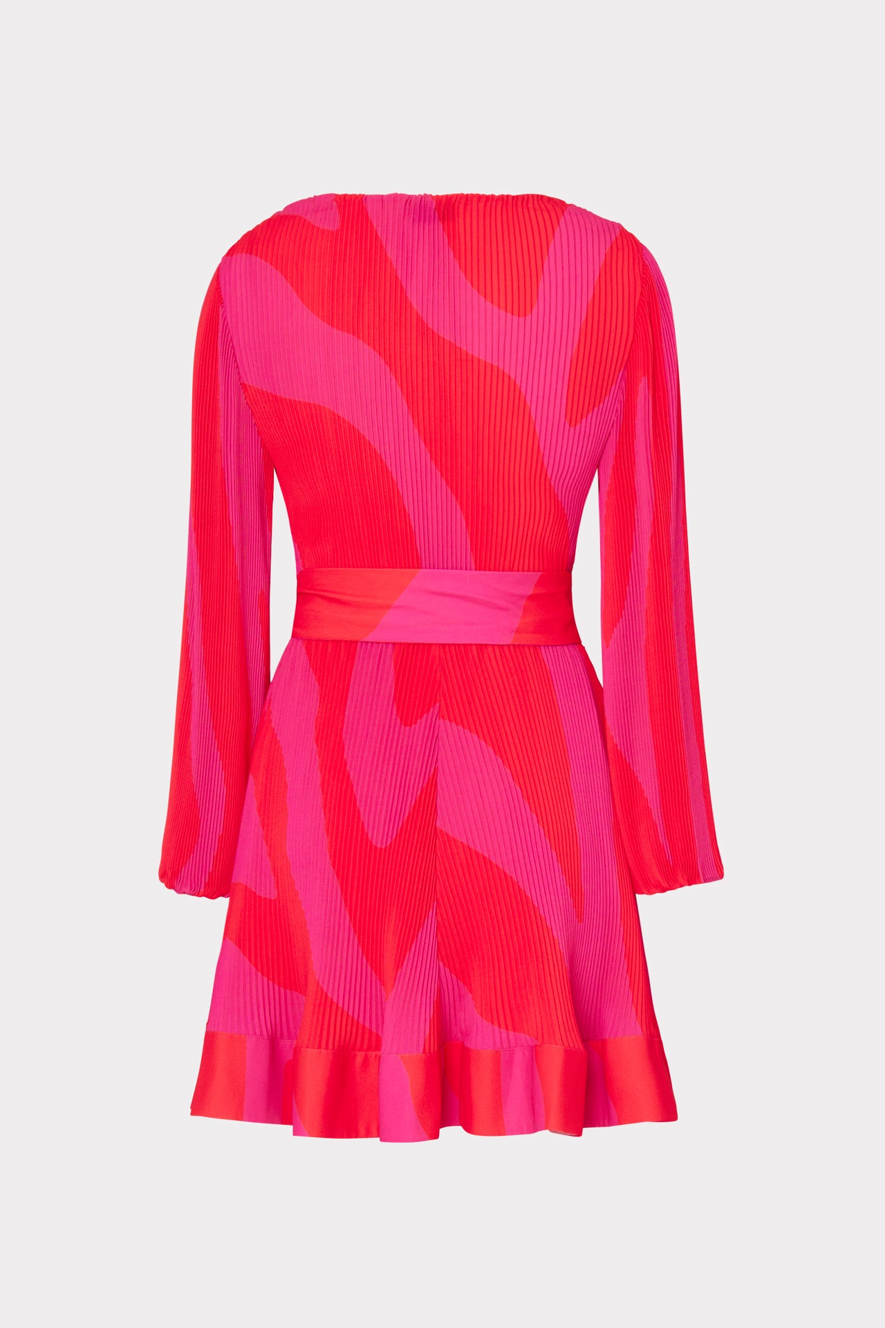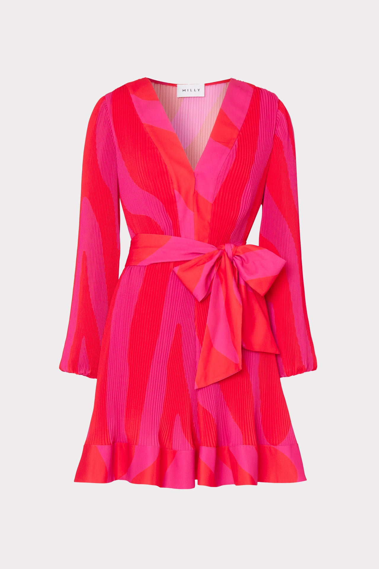 This easy-to-wear pleated short dress features a slim long sleeve, a v-neckline, a MILLY signature pleated skirt, and a tie at the waist for added shape. For the Spring season, it comes in a zebra print featuring our iconic MILLY pink.