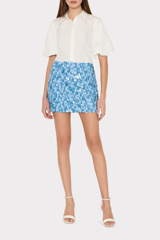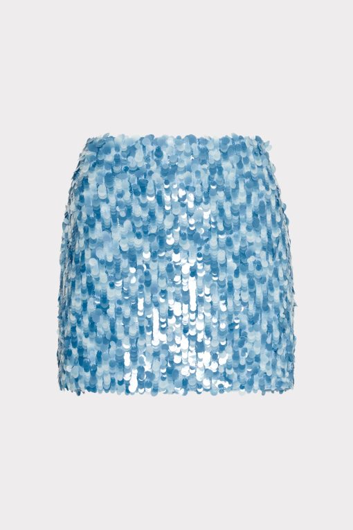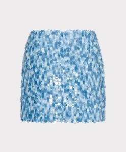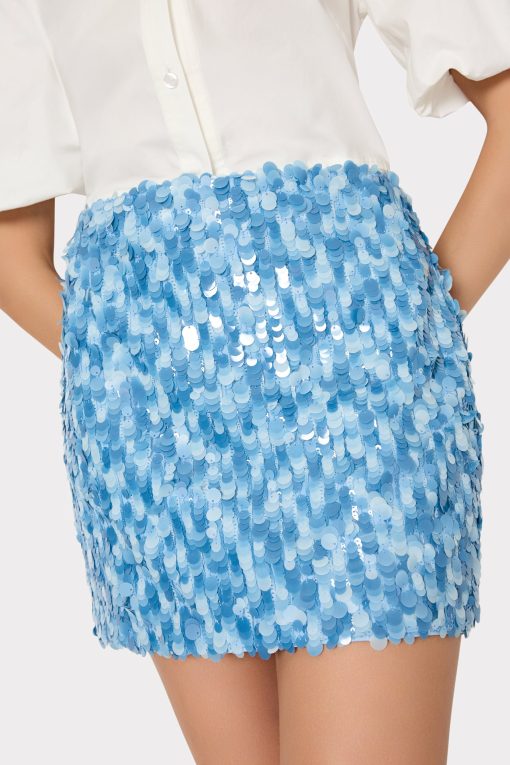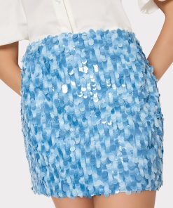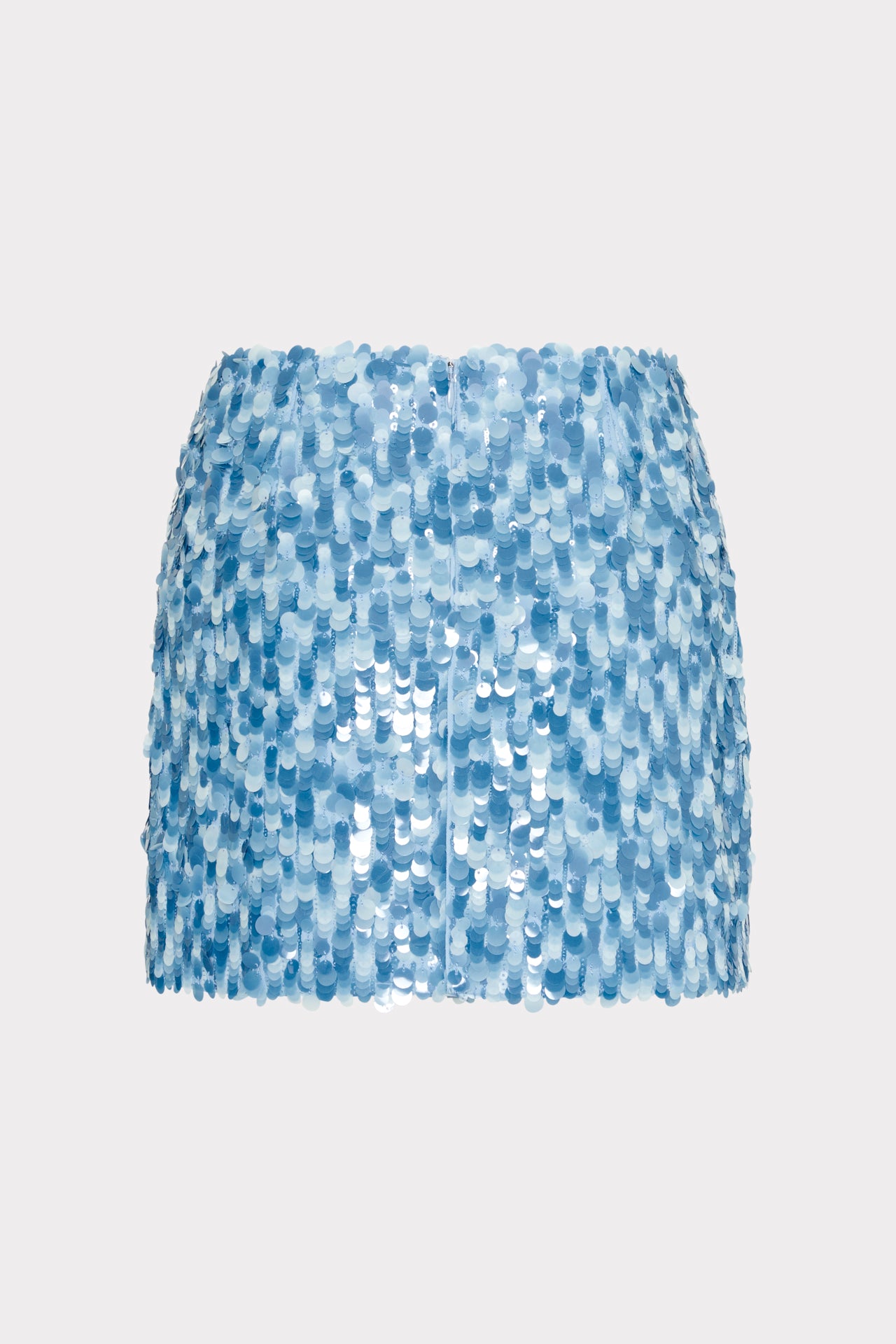 Be the best dressed guest at any party with our paillette sequin mini skirt—allover mixed size sequins create a stunning array of sky blue shine. Dress it down with an oversize white tee and flats or wear it with heels to your next all-night dance party.