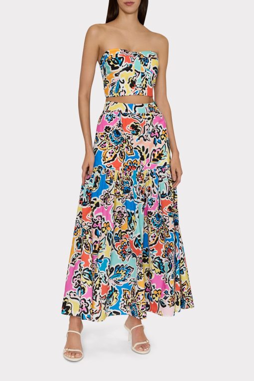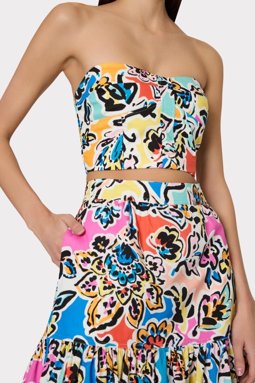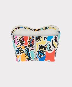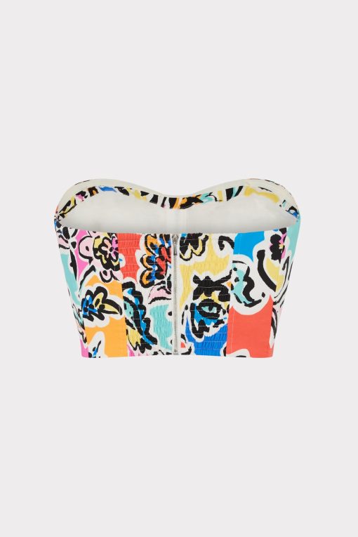 MILLY Women’s Neha Rainbow Oasis Poplin Bustier Top | Black Multi