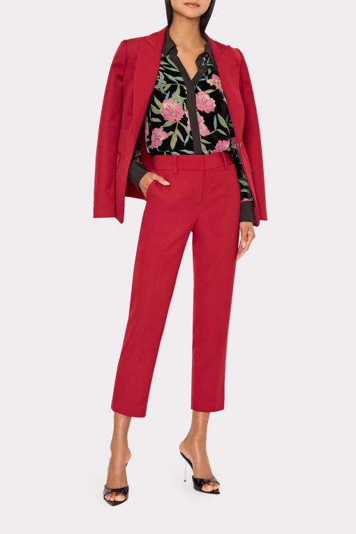 Cut from a structured cady fabric, this versatile pant is designed to be an off-the-moment ankle length with a medium rise and a straight leg. Style yours with a pair of loafers by day and ankle strap heels by night.