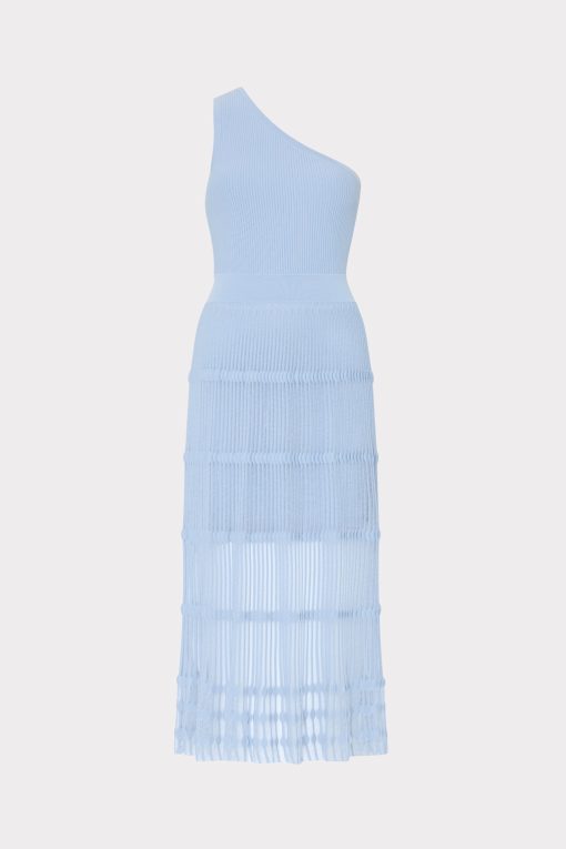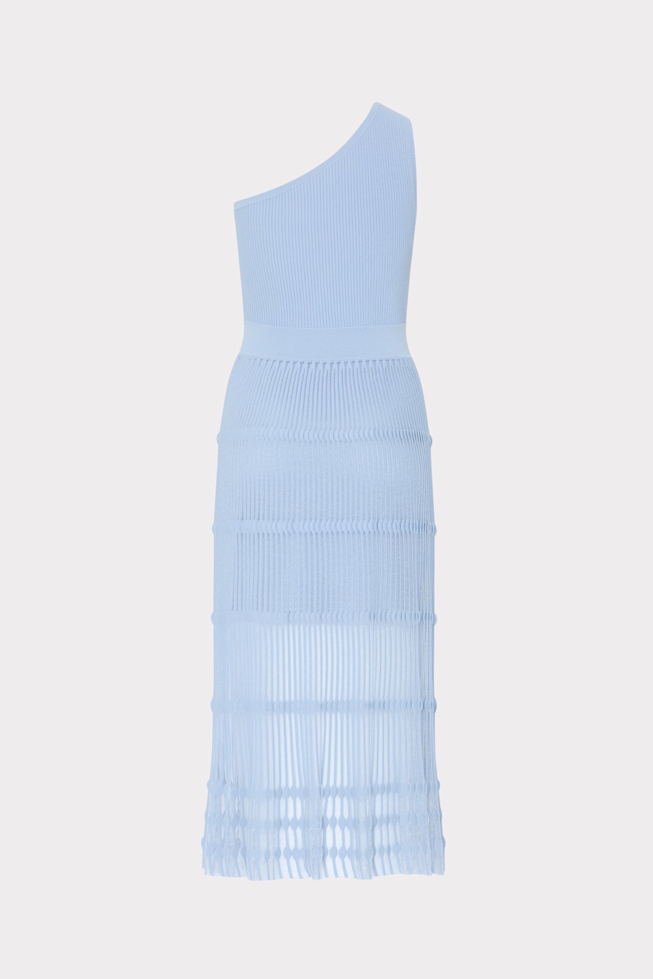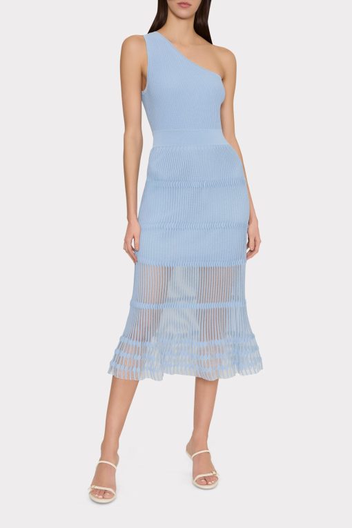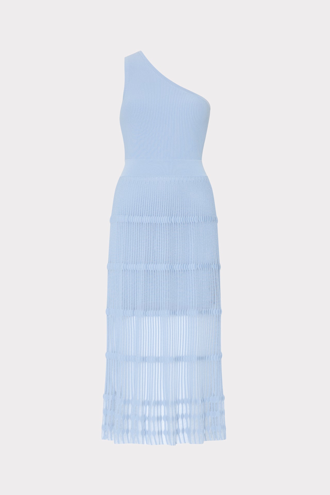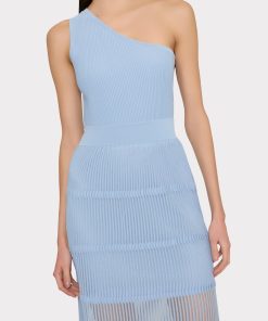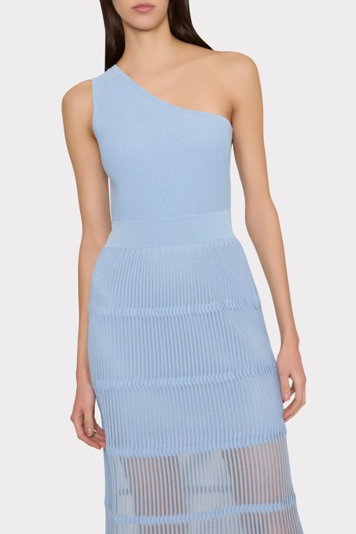 Cut from our ribbed knit material with a hint of stretch, this one-shoulder silhouette is lined to the mid-thigh, with a sheer skirt. Perfect for summer nights, style it with a strappy heel for parties all throughout the season.