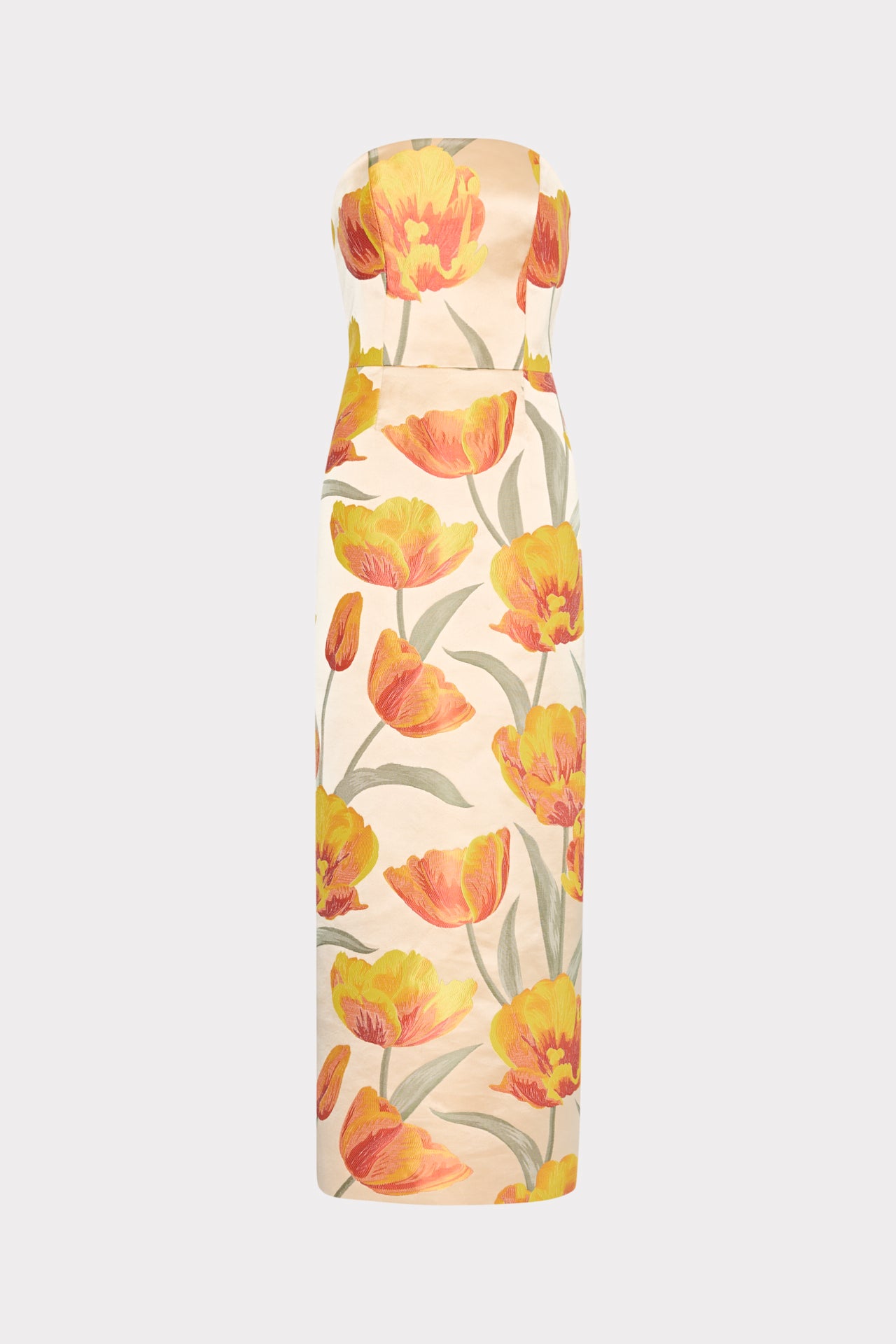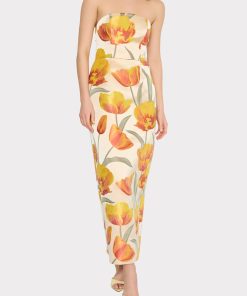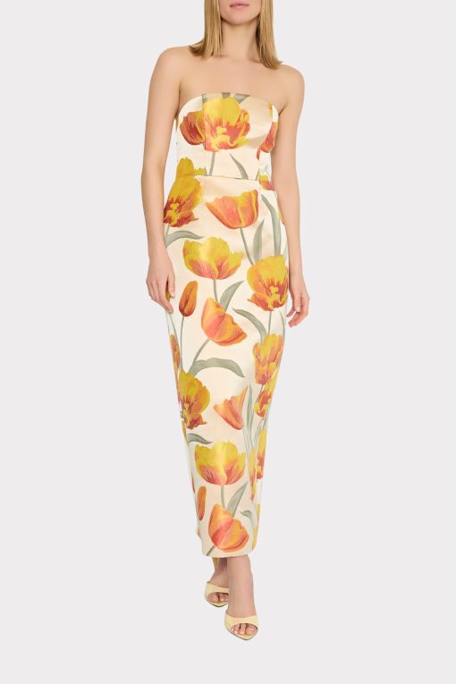 Introducing the Orion Tulip Jacquard Dress, a stunning strapless maxi exuding elegance and charm. With boning at the bodice and a back zip, this dress offers a perfect fit for cocktail parties, formal events, or a night out. Complete with a back slit and non-slip silicone gripping, this versatile piece is ideal for any gala or vacation destination.
