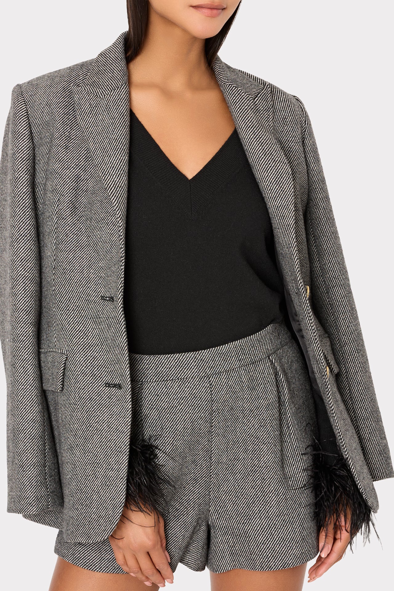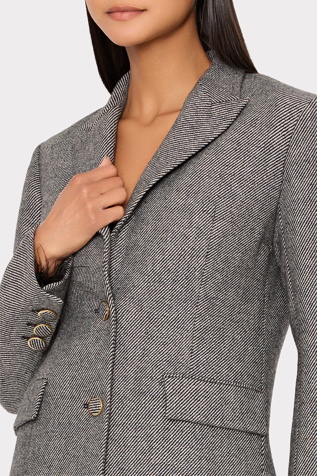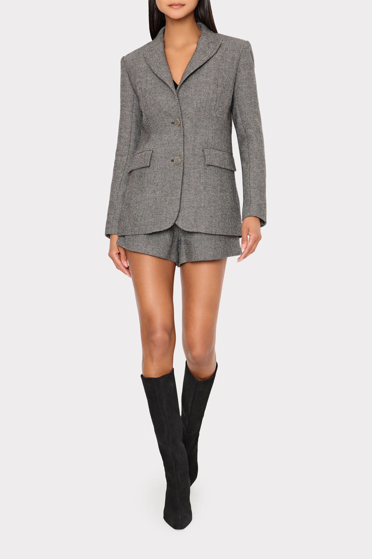 Cut from classic wool tweed, this single breasted blazer style is a fitted style with a two-button closure and pocket details. For the full suit look, wear it with its coordinating Drew Tweed shorts.