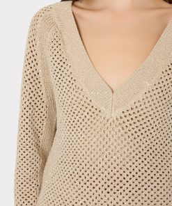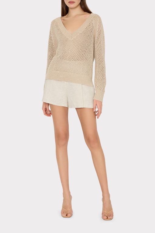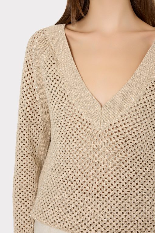 MILLY Women’s Sequin Mesh V-neck Sweater | Beige