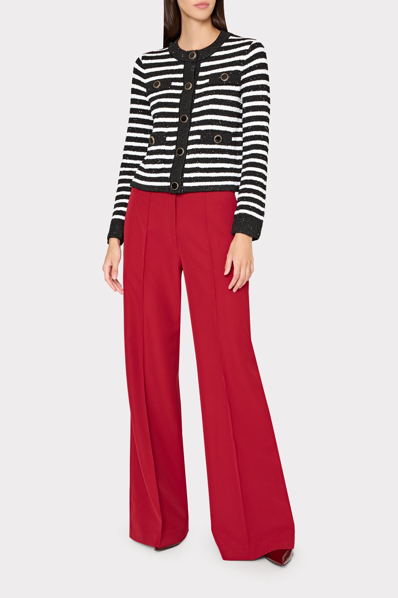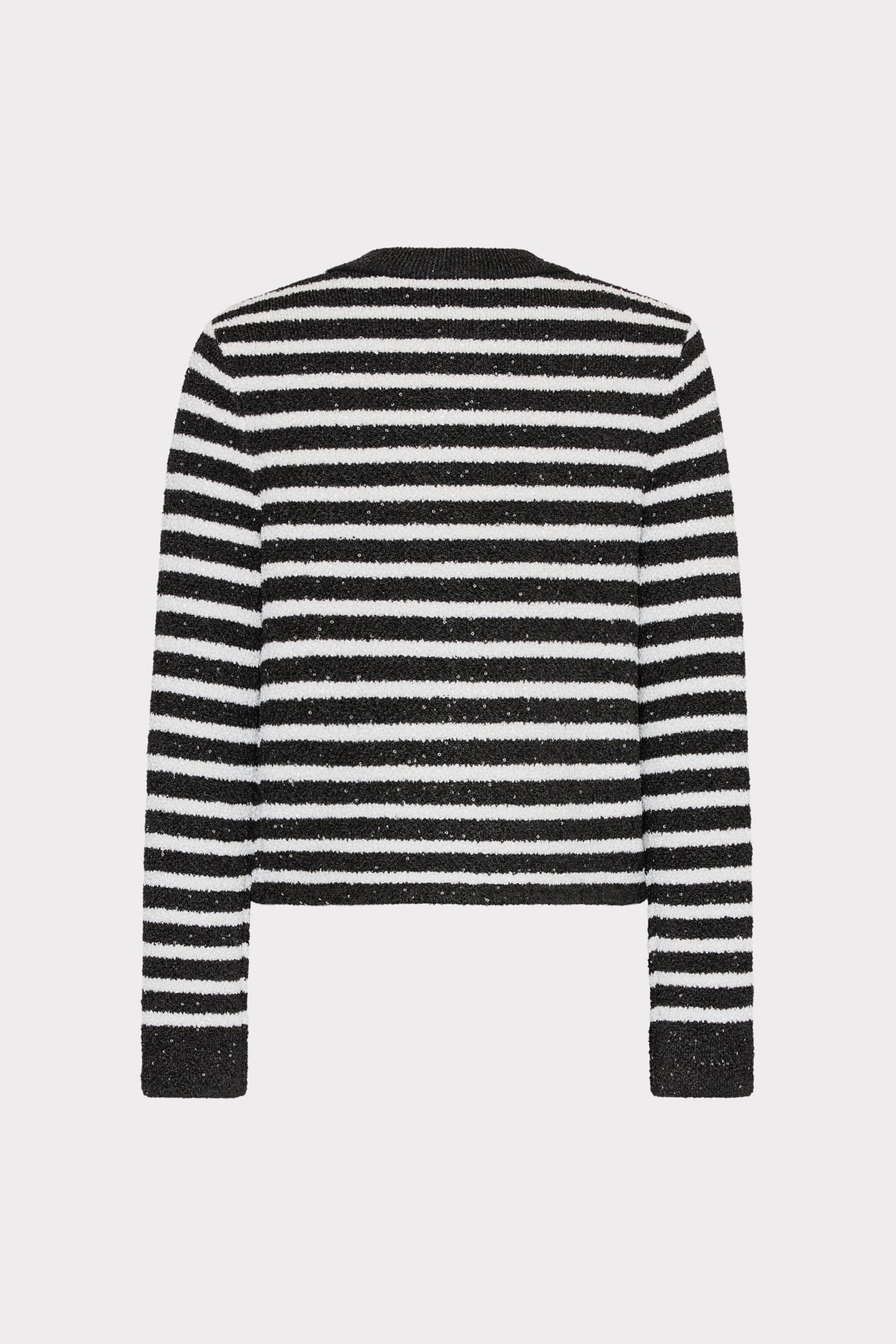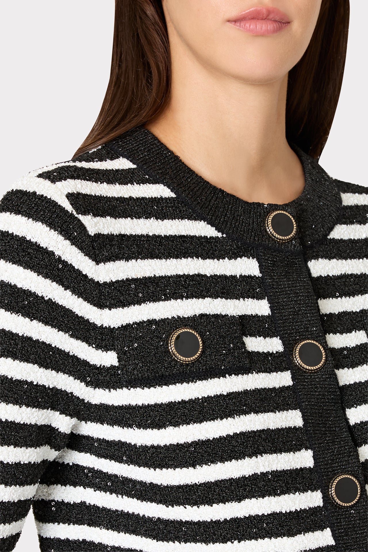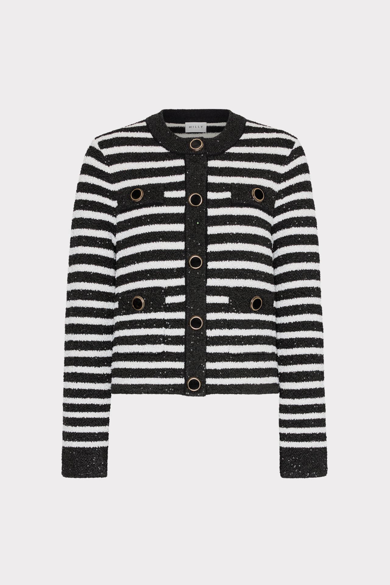 This striped knit jacket is detailed with textured gold buttons for a polished finish. Layer it over a camisole and trousers for a refined office look, or style it with jeans for a chic weekend vibe.