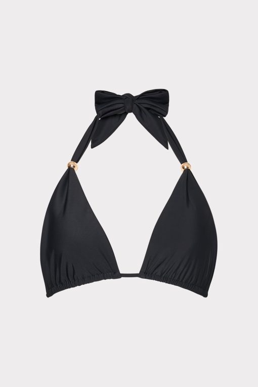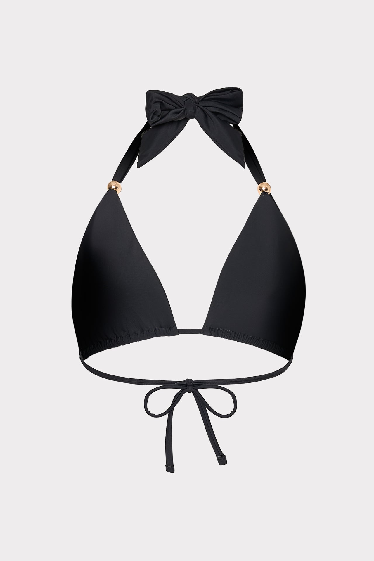 Made from sustainable Italian swim fabric, this classic triangle halter bikini top is accented with two beads on each side. It ties around the neck and in the back, has removable cups, and is meant to be worn with our solid Margot bikini bottom.