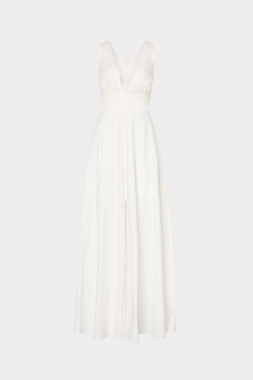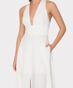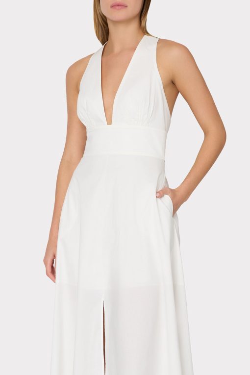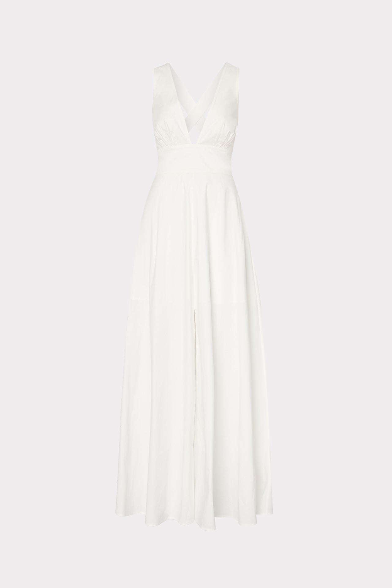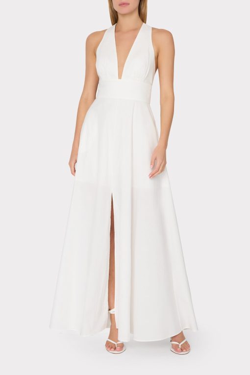 Perfect for your next beach holiday, the Catarina maxi is a must-have for vacation nights out. Cut from cotton poplin, it has plunging neckline, front slits, and ties in the back. Style yours with neutral accessories.