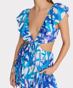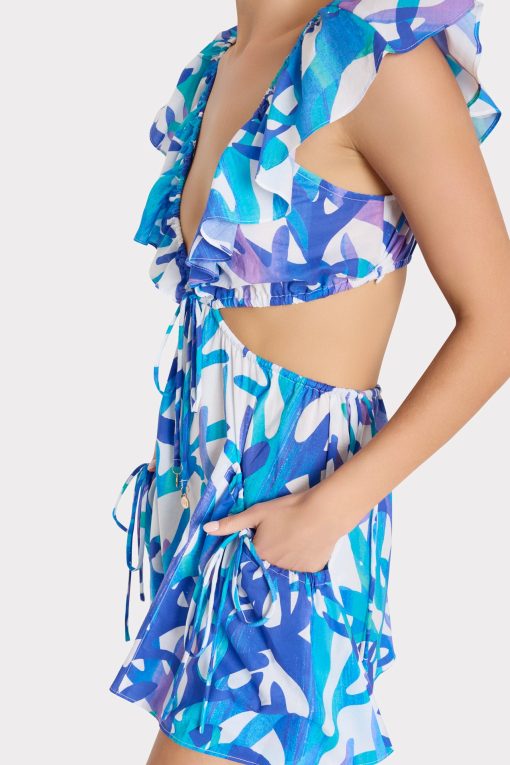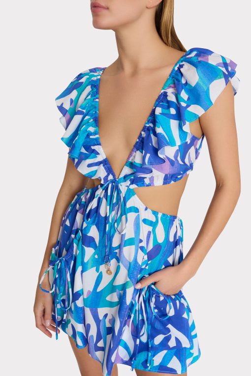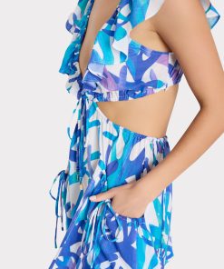 Cut from 100% lightweight cotton, our versatile Delilah dress has a plunging neckline that’s trimmed with ruffles, side cut-outs, pockets, and an open back. Wear it over a bikini as a cover-up or with flats as a beachy day dress. For the Resort Cabana season, it comes in our new Under the Sea print.