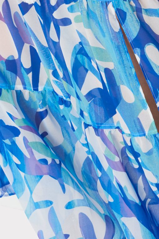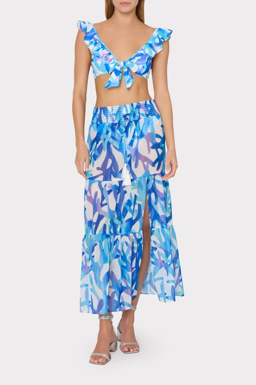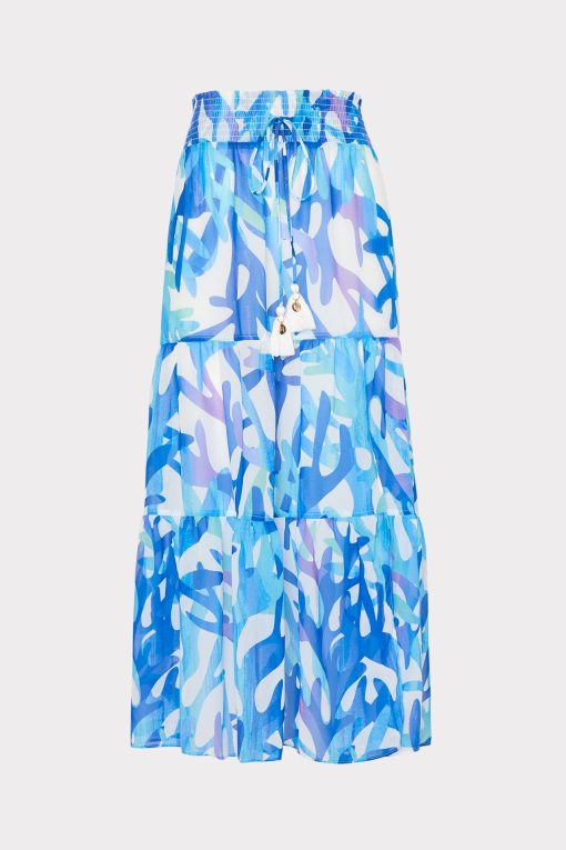 This lightweight, chiffon cover-up skirt is done in our new Italian Under the Sea Print and is made to coordinate with several versions of our Cabana swimwear. It has an elastic, smocked waist line and a breezy side slit. Wear it with our Under the Sea Print bikinis and one pieces.