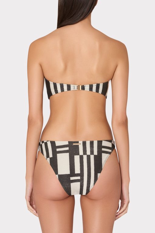 Made from luxe, Spanish swim fabric with shimmer detail, the Margot bikini bottom has a scoop leg and offers medium brief coverage. For the full look, wear it with its coordinating Barcelona bandeau bikini top and Jessie Barcelona mini swim skirt.