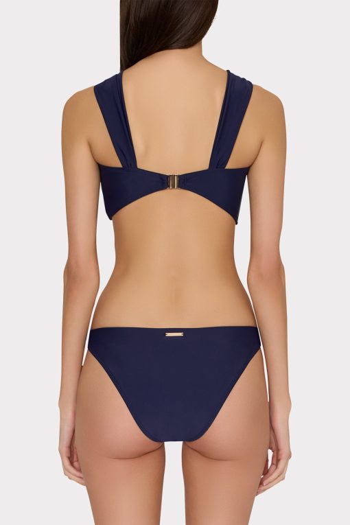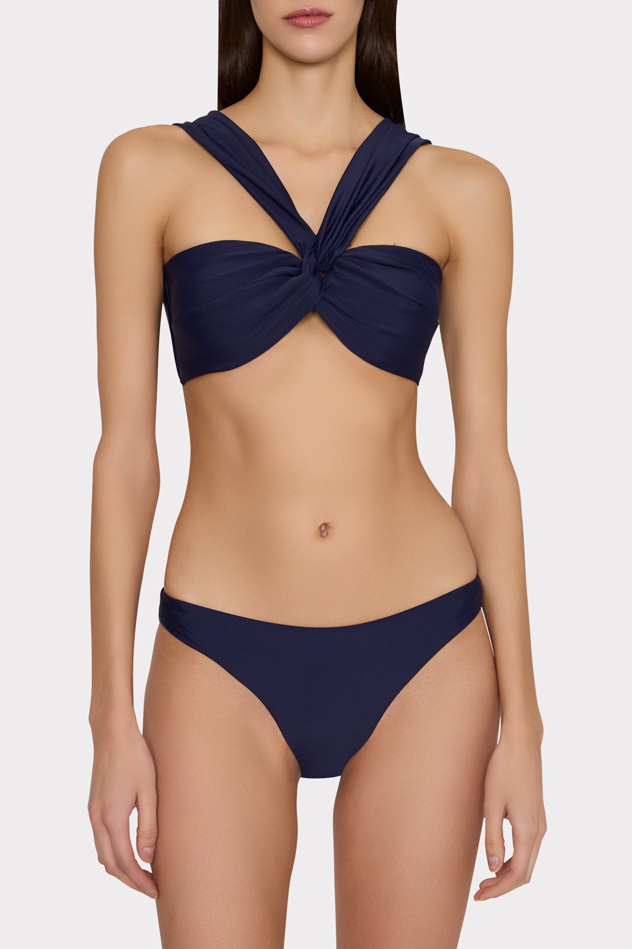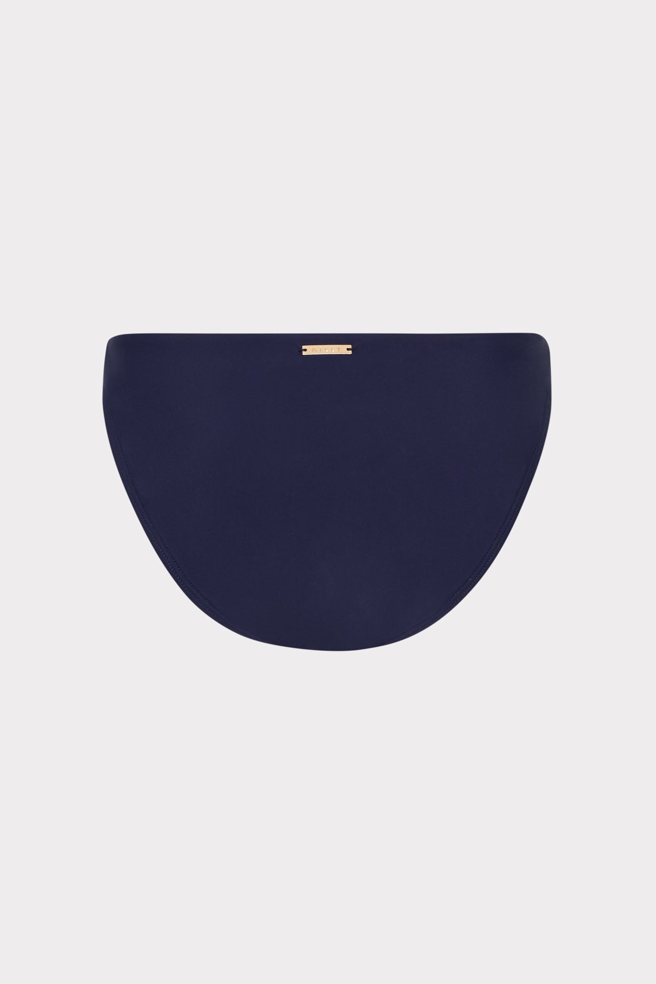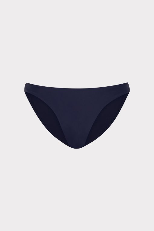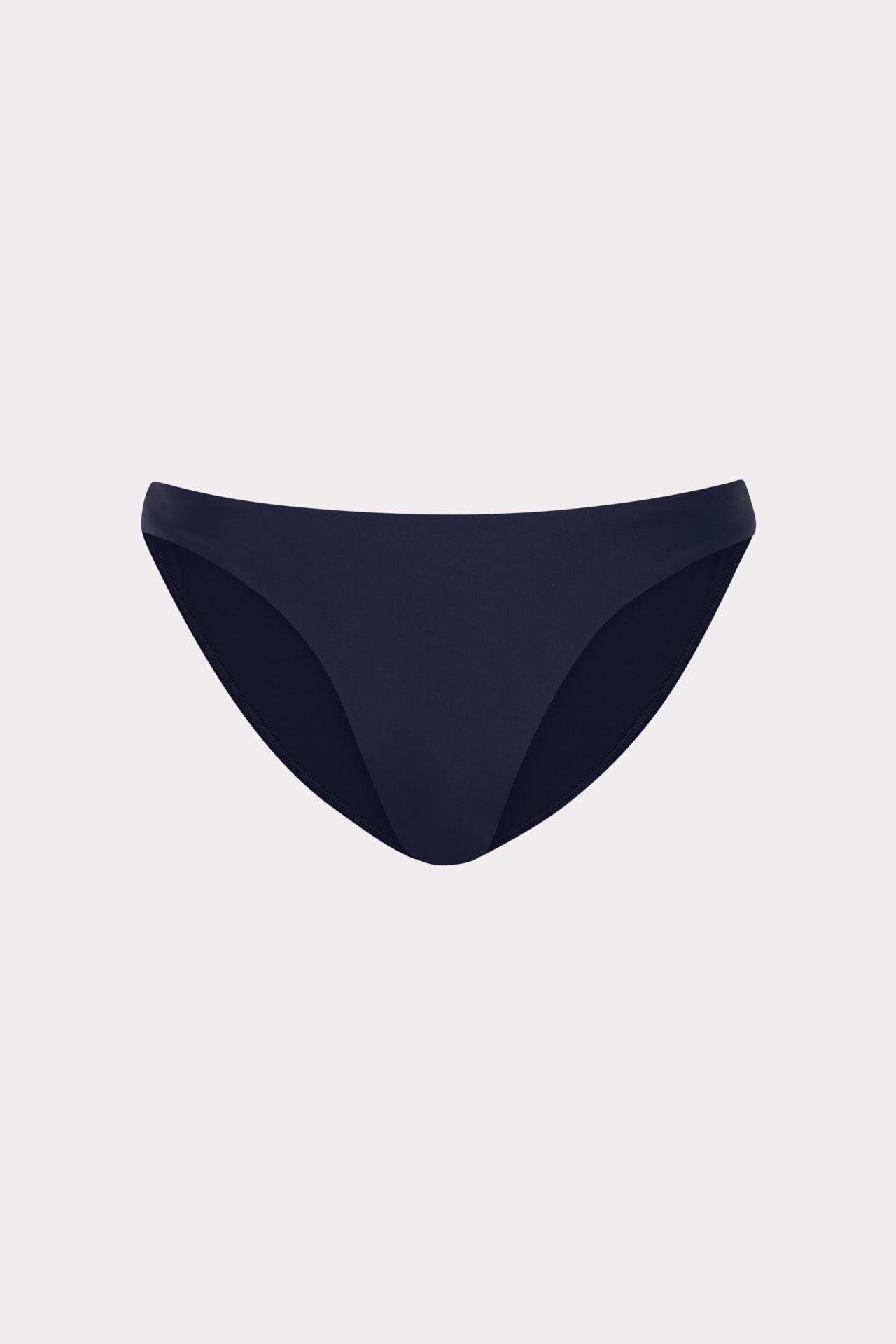 The Margot bikini bottom is our classic low rise scoop leg fit with medium brief coverage. Made from our signature Italian sustainable swim fabric in versatile navy, it looks great under all of our Milly cover-ups. Wear it with our coordinating Bikini Top.