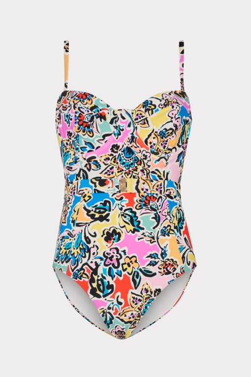 Elevate your poolside look with our Belted One-piece. This style sculpts the body, featuring underwire cups for extra lift, dainty thin straps, and a high-cut around the legs. The final touch is a removable belt with a clasp that cinches everything in. For summer, it’s offered in our Rainbow Oasis print. Style it with our matching Rainbow Oasis chiffon cover-up.