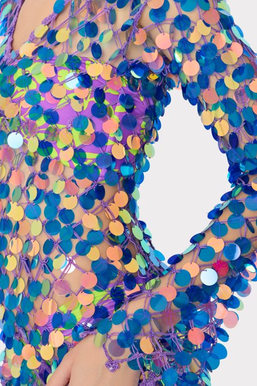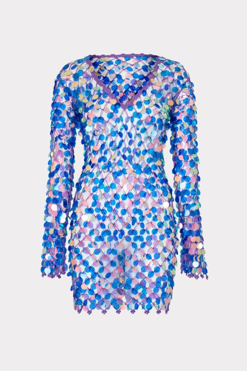 Some beach parties call for a bit more glam, so we gave a classic crochet coverup a sparkly update with allover paillette sequins. This version has a relaxed fit combined with a chic long sleeve. Wear it over your favorite MILLY bikini.