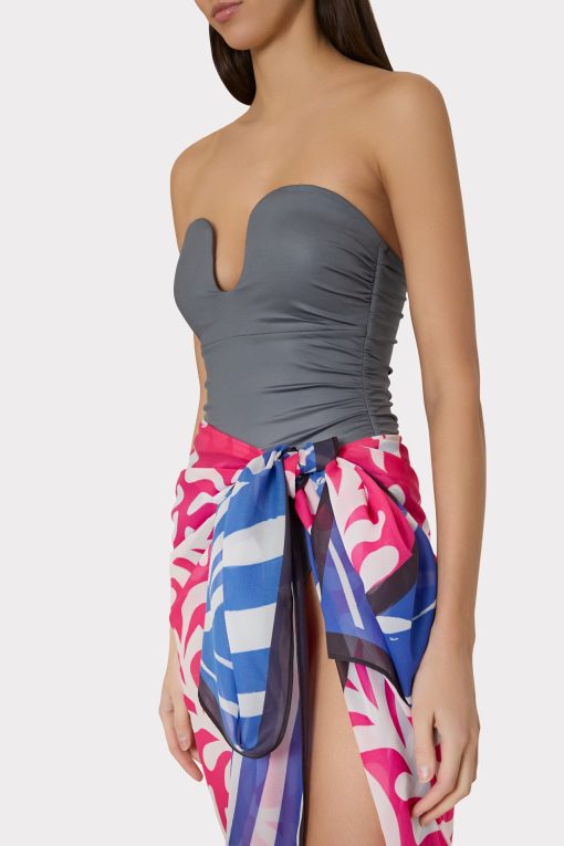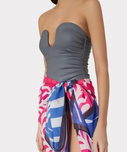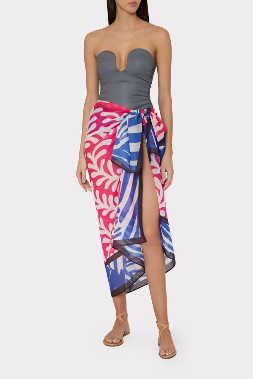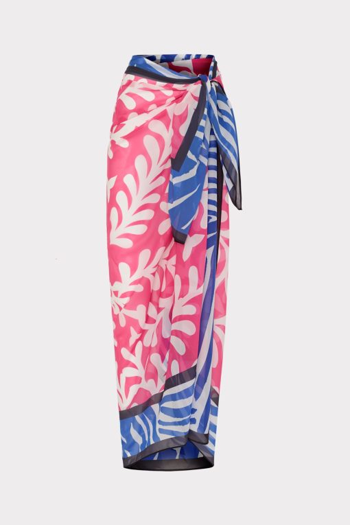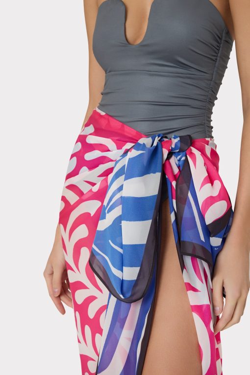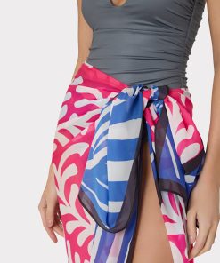 Add a fresh burst of color to your vacation wear with this fun, multi-print sarong. A perfectly pink tropical print is contrasted with an on-trend blue zebra pattern and black trim, meaning you can style it with any of our solid swimsuits. Cut from a luxe, fast-drying fabric so you can wrap it around your waist or wear it as a dress and head straight from the beach to drinks.