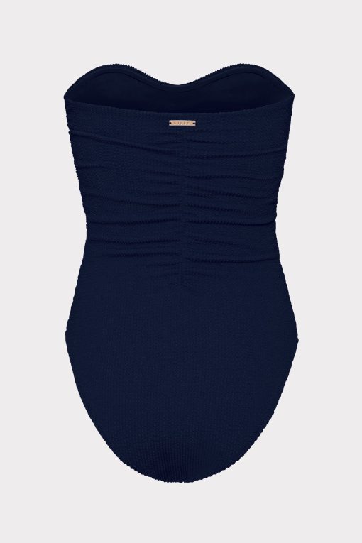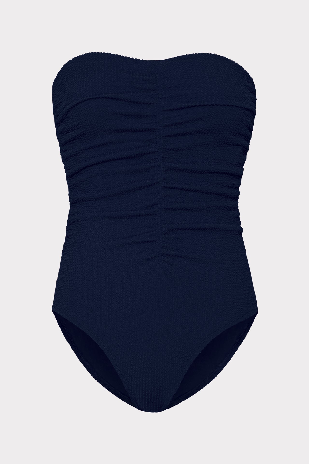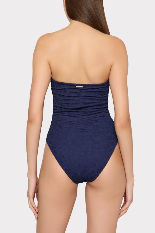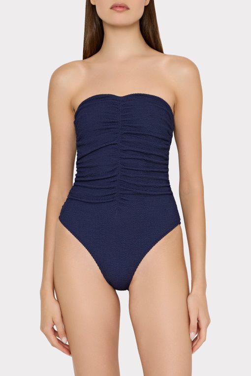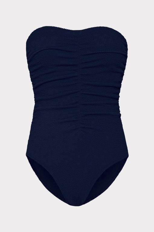 For other similar pieces to the white Textured Ruched One Piece, check out Milly’s curated swimwear collection.