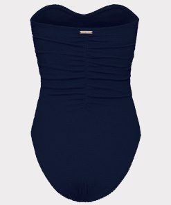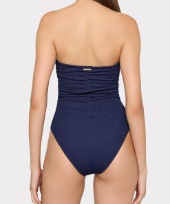 If bandeau is your go-to silhouette, don’t miss this absolutely perfect one-piece. It’s ruched throughout to create an elongating and more forgiving look. And it’s cut from our unique, sustainable textured swim fabric. It comes in neon pink and white.