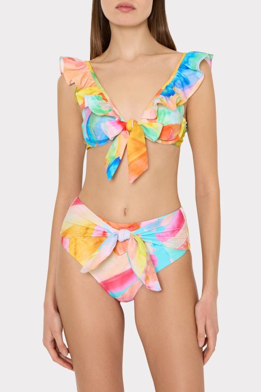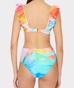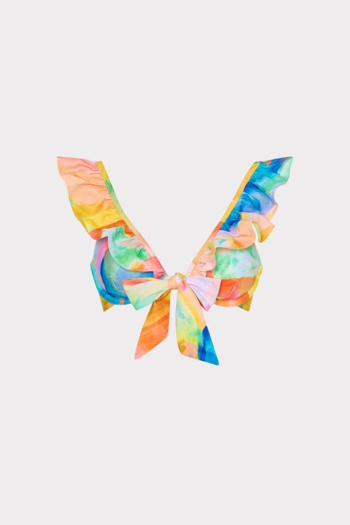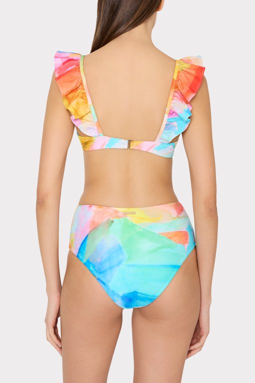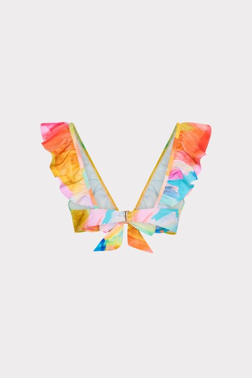 MILLY Women’s Swim Watercolor Paint Stroke Ruffle Bikini Top | Multi