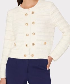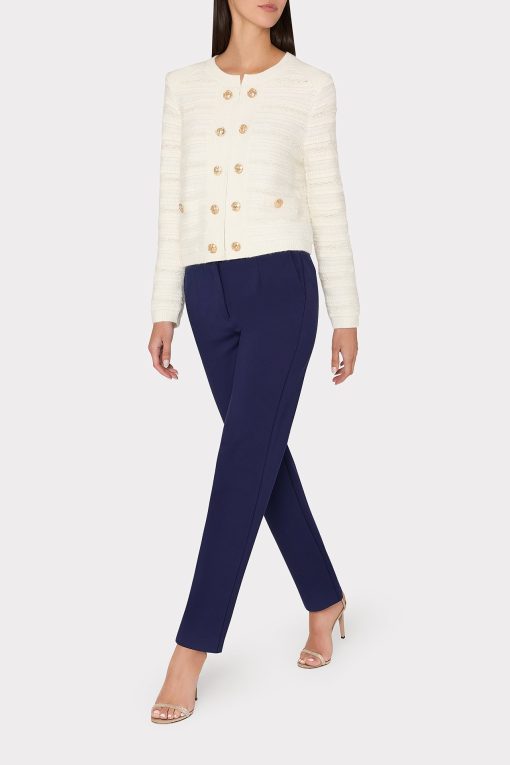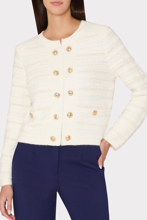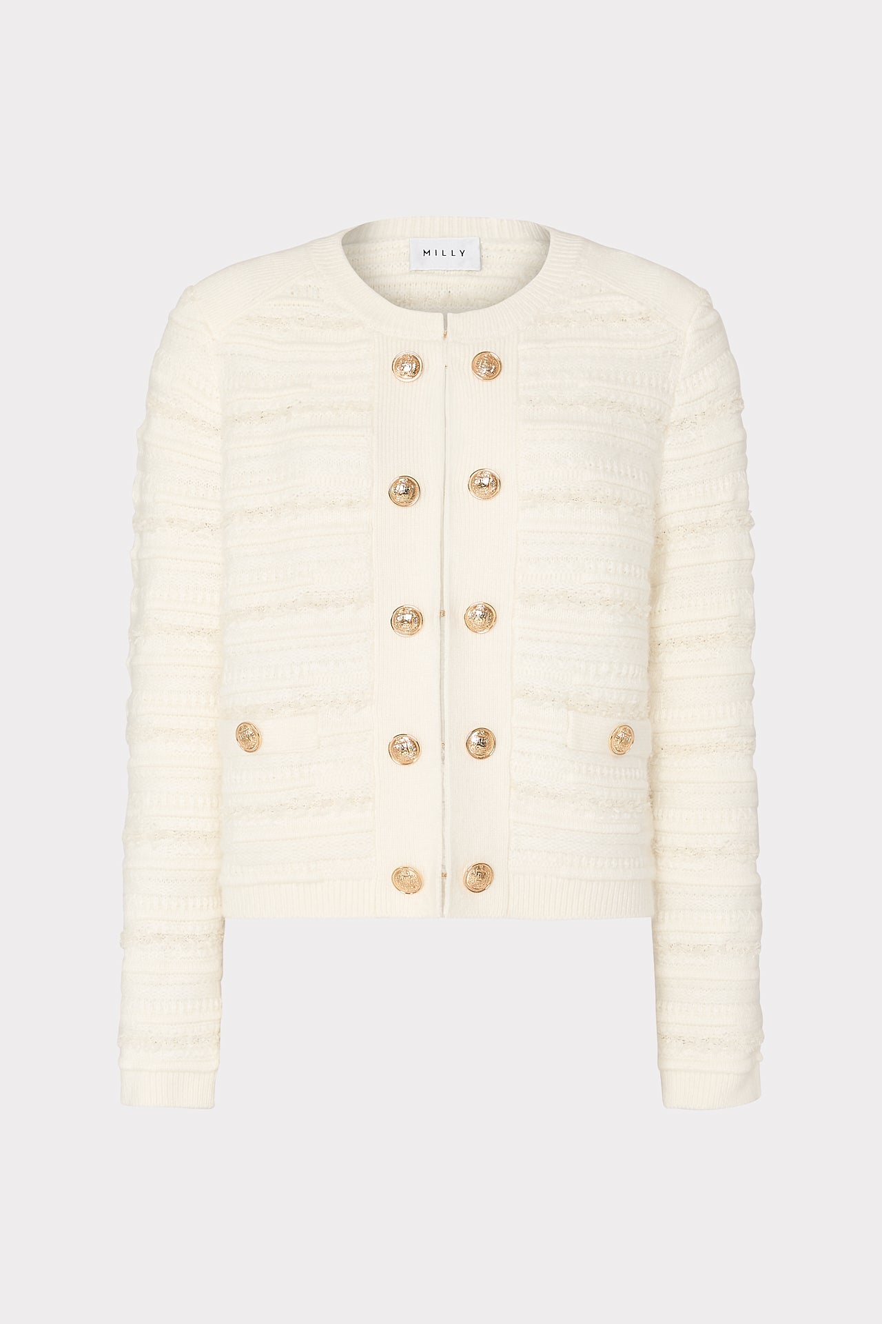 One of the most timeless pieces in our Fall collection, our classic knit cardigan jacket is made from a luxe, angora, wool, and mohair blend. It has decorative, military-style gold buttons to close and on its pocket detail. Wear it every day with denim or on special occasions with a simple skirt.