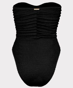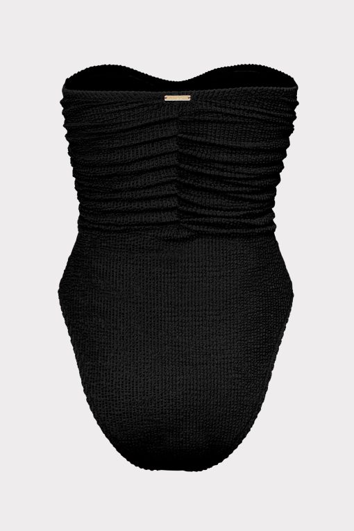 For other similar pieces to the black Textured Ruched One Piece, check out Milly’s curated swimwear collection.