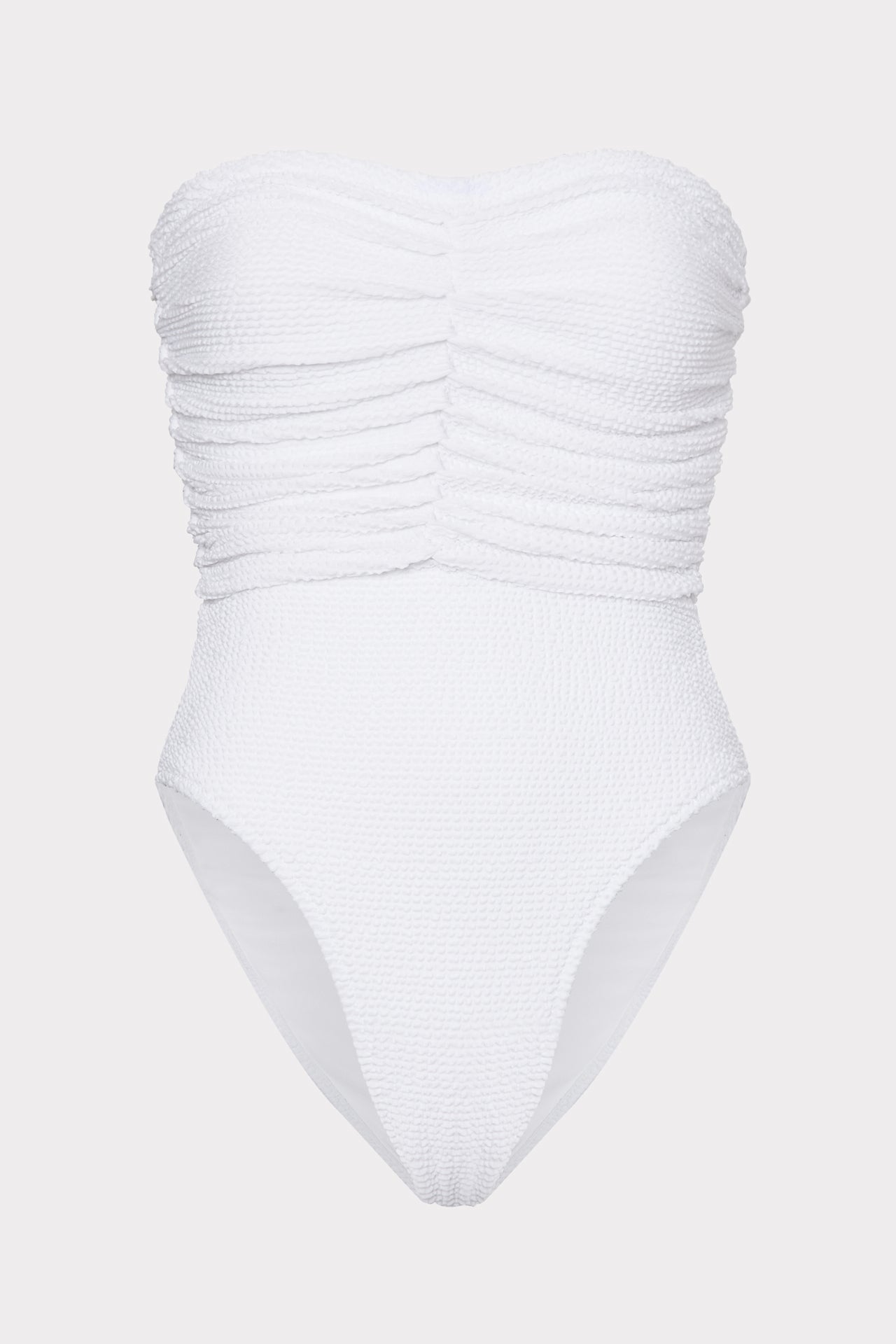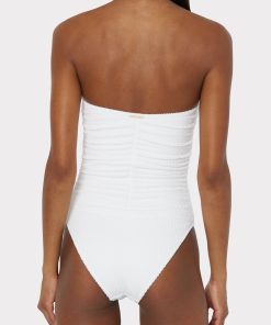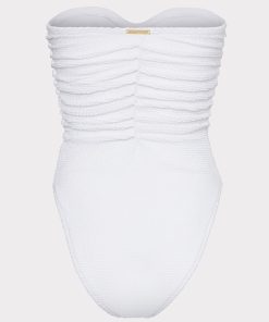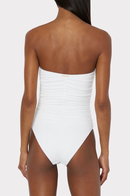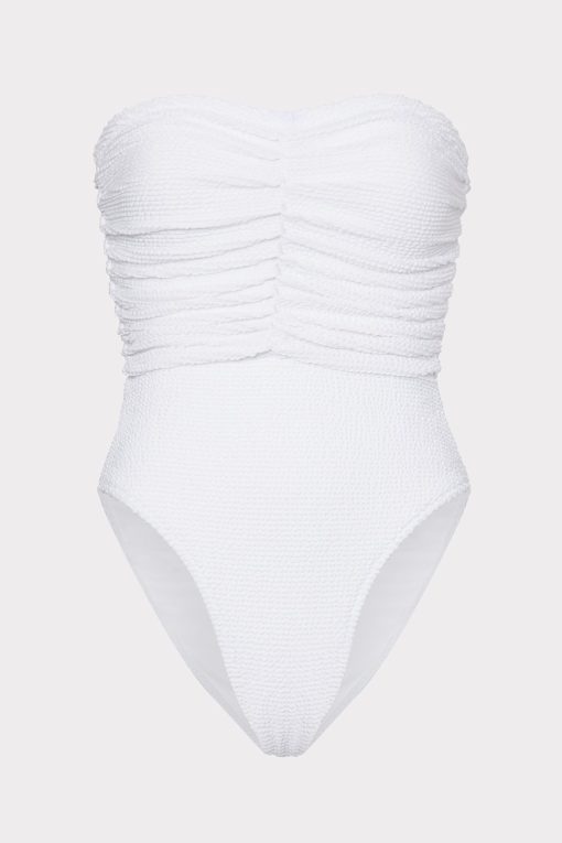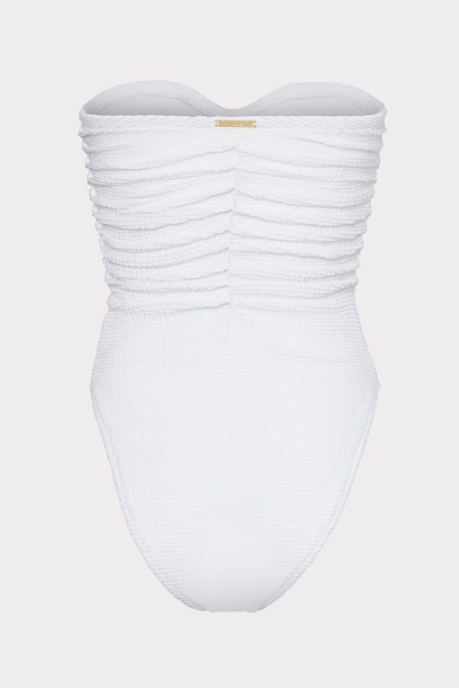 For other similar pieces to the white Textured Ruched One Piece, check out Milly’s curated swimwear collection.