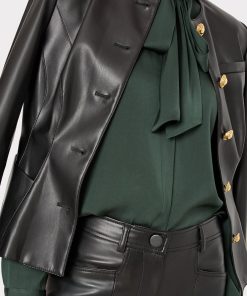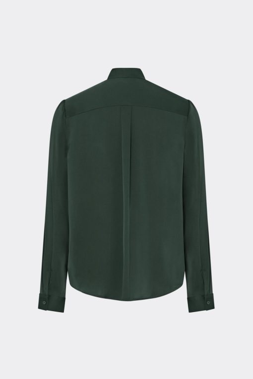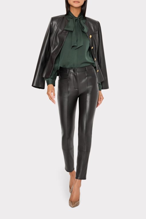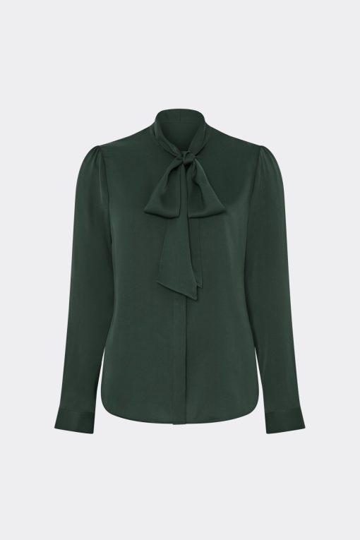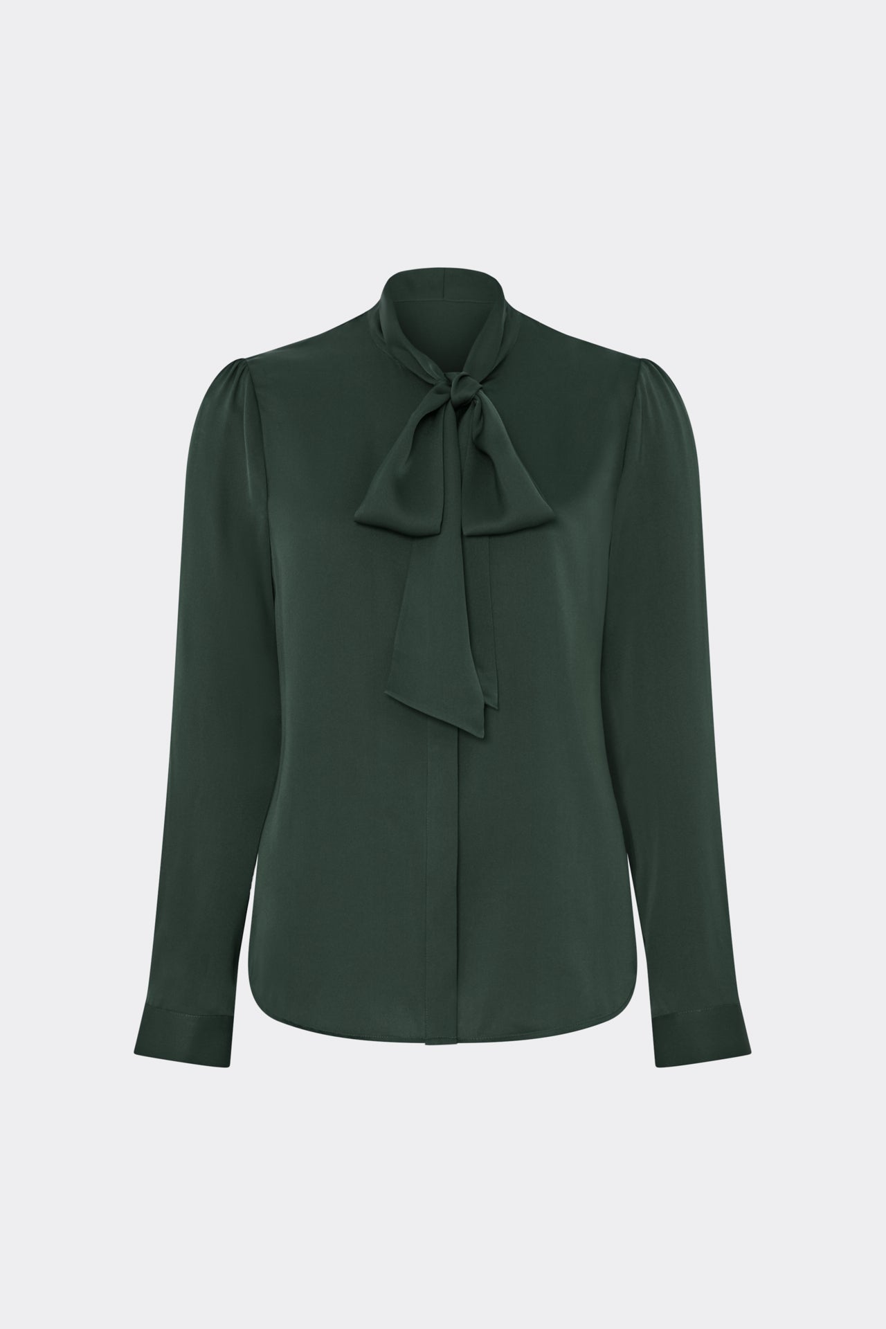 Made from a lustrous, jewel-toned silk-like fabric, this timeless tie-neck blouse style has long bow ties that frame the collar. Wear it tucked into your favorite MILLY trouser or skirt.