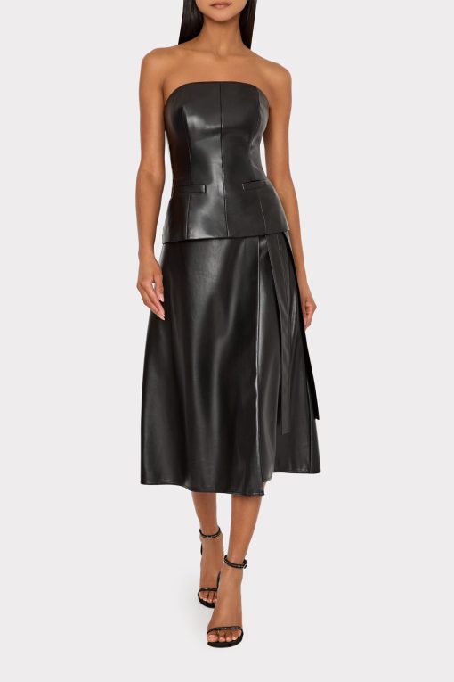 Cut from our buttery soft vegan leather that feels like the real thing, this a-line maxi is designed to resemble a wrap-style skirt. It’s finished with a bow accent at the waist. Style it with your favorite MILLY blouse or faux leather top.